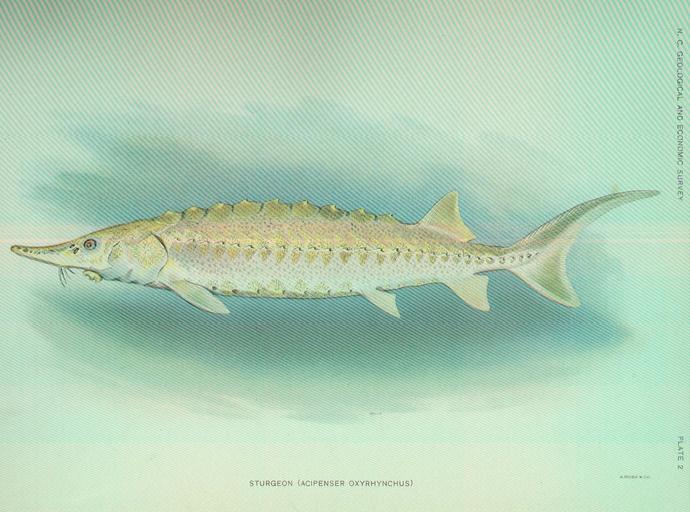 Keywords: FMIB 51324 Sturgeon (Acipenser oxyrhynchus).jpeg Sturgeon Acipenser oxyrhynchus Subject Sturgeons Atlantic sturgeon Tag Fish 1907 Cite book Fishes of North Carolina Smith Hugh M Raleigh NC E M Uzzell Co 1907 North Carolina Geological and Economic Survey vol II Plate 2 Creator Hugh McCormick Smith PD-UWASH-FMIB Institution University of Washington FMIB-source accession number 51324 Hugh McCormick Smith Acipenser oxyrinchus oxyrinchus Drawings of fish |