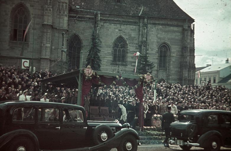 Keywords: Fő tér a magyar csapatok bevonulása idején, a Szent Mihály-templom előtti emelvénynél Horthy Miklós. A felvétel 1940. szeptember 11-én készült. Fortepan 92490.jpg hu Fő tér a magyar csapatok bevonulása idején a Szent Mihály-templom előtti emelvénynél Horthy Miklós A felvétel 1940 szeptember 11-én készült Location Romania Transylvania Cluj-Napoca Tags territorial gain national emblem colorful Title Fő tér a magyar csapatok bevonulása idején a Szent Mihály-templom előtti emelvénynél Horthy Miklós A felvétel 1940 szeptember 11-én készült http //www fortepan hu/_photo/download/fortepan_92490 jpg 1940 Fortepan 92490 http //www fortepan hu/_photo/download/fortepan_92490 jpg http //www fortepan hu/ lang en img 92490 Unknown The release at fortepan hu is CC-BY-SA-3 0 As the photographer is unknown or pseudonymous and the photograph is Age 1940 01 01 years old it is considered public domain both in the country of publication Hungary and the USA where Wikimedia Commons is hosted See Fortepan HU for more information on related uploads PD-anon-70-EU PD-anon-auto-1996 1940 Hungary DEFAULTSORT Fortepan 092490 1940 photographs Colour photographs from Fortepan Images uploaded by Fæ Northern Transylvania Second Vienna Award |