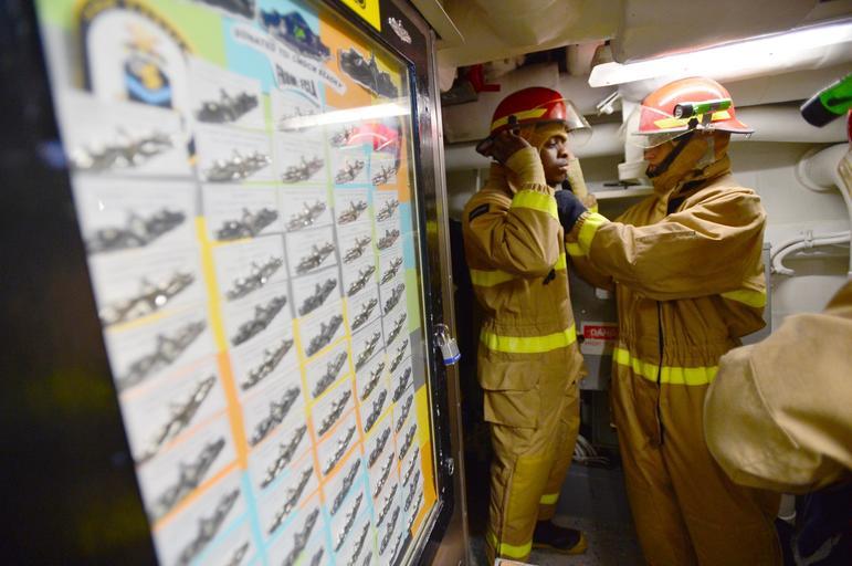 | Keywords: Foal Eagle 2015 150309-N-UG232-123.jpg en 150309-N-UG232-101 WATERS TO THE EAST OF THE KOREAN PENINSULA March 10 2015 Damage Controlman Fireman Robert Ryan helps Hull Maintenance Technician Fireman Recruit Maliek McKenna don his helmet for damage control training aboard USS Lassen DDG 82 during exercise Foal Eagle 2015 Foal Eagle is a series of annual training events that are defense-oriented and designed to increase readiness and maintain stability on the Korean Peninsula while strengthening the ROK-U S alliance and promoting regional peace and stability of the Indo-Asian-Pacific region U S Navy Photo by Mass Communication Specialist 1st Class Martin Wright/Released 2015-03-10 Petty Officer 1st Class Martin Wright https //www dvidshub net/image/1821969 150309-N-UG232-123 2015-03-19 00 03 USS LASSEN WATERS TO THE EAST OF THE KOREAN PENINSULA AT SEA PD-USGov-Military-Navy USS Lassen DDG-82 Images from DoD uploaded by Fæ Foal Eagle 2015 |