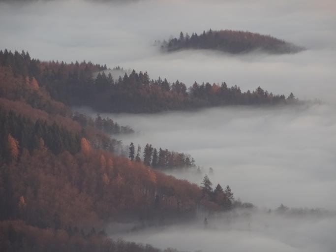 Keywords: fog forest autumn smoke mist trees mystical mood nature cloud plume clouds coniferous forest landscape wet cold hiking ghosts white pine forest cloud cover selva marine