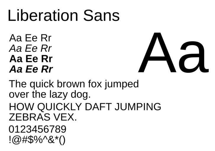 | Keywords: Font Sample - Liberation Sans.svg Font sample for Liberation Sans part of the en Liberation fonts Created in en Inkscape Text converted to curves for portability with systems without the Liberation fonts notably Wikipedia doesn't yet include them en wikipedia 2007-08-04 Alan De Smet wikipedia en Alan De Smet original upload log page en wikipedia Font_Sample_-_Liberation_Sans svg 2007-08-04 22 15 Alan De Smet 744×525× 192242 bytes <nowiki>Fix malformed bold and italic examples</nowiki> Liberation Sans SVG typeface specimen samples |