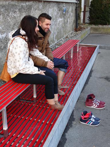 Keywords: foot bath couple together rest enjoy relax shoes regulation foot spa