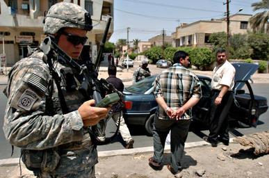 Keywords: Foot Patrols in Adhamiyah DVIDS48919.jpg en Caledonia Mo native Pfc Dustin Walker 20 a forward observer with 1st Platoon Battery B 2nd Battalion 319th Airborne Field Artillery Regiment 2nd Brigade Combat Team 82nd Airborne Division provides security during an impromptu vehicle check point on the streets south of the Fish Market of the Rabi neighborhood of Baghdad's Adhamiyah District June 28 The vehicle checkpoints came the day after a vehicle-borne improvised explosive device commonly referred to as a car bomb was detonated in the area killing one Iraqi policeman and wounding another two as well as two Iraqi civillians 2007-06-28 Spc Leith Edgar https //www dvidshub net/image/48919 48919 2007-07-02 18 13 RABI PD-USGov 82nd Airborne Division Images from DoD uploaded by Fæ |