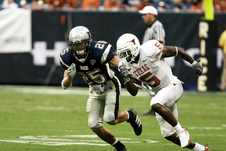 Keywords: football american football game texas competition competitors sport ball play pigskin running receiver defensive back defender pursuit action motion athlete outdoors male playing competitive field football field referee texan