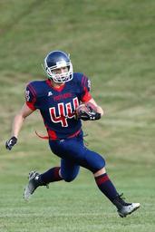 Keywords: football american football sport ball game play pigskin competition helmet athlete american football field football field athletic grass field turf runner running back ball carrier running action high school grass field competing competitive boy youth male outdoor uniform canada canadian |
