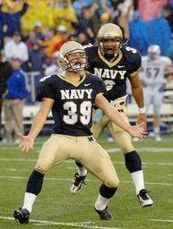 Keywords: football american game kicker successful kick celebration celebrating stadium sport team players competition action field goal college