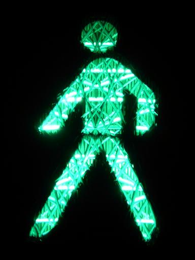 Keywords: footbridge traffic lights males green little green man traffic signal traffic road sign