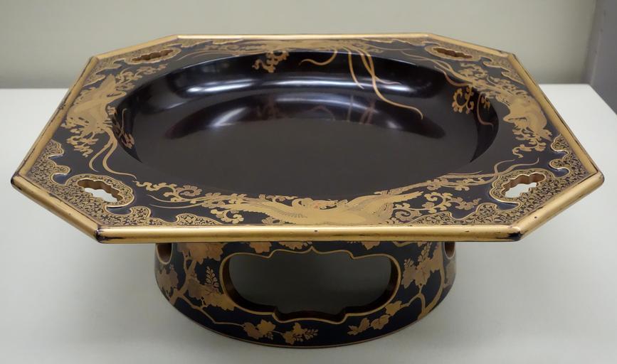 Keywords: Footed Tray, Edo period, 18th century, phoenix and paulownia design in maki-e lacquer - Tokyo National Museum - DSC05977.JPG en Exhibit in the Tokyo National Museum Tokyo Japan This artwork is old enough so that it is in the public domain 2013-09-03 00 19 56 own Daderot cc-zero Edo lacquerware in the Tokyo National Museum Uploaded with UploadWizard Maki-e