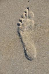 Keywords: footprint beach sand foot walk barefoot symbol print imprint ocean sea holiday track transience journey seashore footstep
