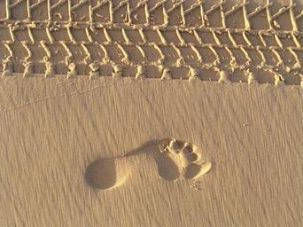 Keywords: footprint footprints sand beach barefeet barefoot foot footstep human vehicle traction pristine