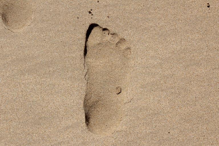 Keywords: footprint sand beach sea foot summer walk ocean nature travel step coast outdoor barefoot seashore feet alone walking