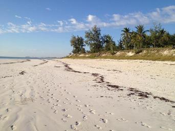 Keywords: footprints footprints in the sand beach mar sol beira mar sky travel landscape coconut trees horizon trees