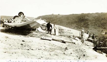 Keywords: ford 5-at-b 5atb tri motor trimotor aviation airplane aircraft airlines airliners nc9636 c/n 5-at-10 cn5at10 5-at-10 5at10 maddux air lines madduxairlines maddux ford 5-at-b trimotor ford5atbtrimotor ford 5-at-b ford5atb ford trimotor fordtrimotor pratt & whitney prattwhitney pratt & whitney wasp prattwhitneywasp p&w wasp pwwasp wasp engine waspengine wasp radial waspradial plane crash planecrash fatal plane crash fatalplanecrash outdoor monochrome Filename: 01_00091747 TITLE: Ford, 5-AT-B, Tri-Motor CORPORATION NAME: Ford Motor Corporation DESIGNATION: 5-AT-B, Tri Motor ADDITIONAL INFORMATION: USA, Photo is of the wreckage of a Maddux Air Lines Trimotor that was involved in a mid air collision with a US Army biplane, killing all 6 aboard both aircraft. The plane was enroute to Phoenix from San Diego. The April 21, 1929 crash occurred just after take off from San Diego. It was the first time a U.S. airliner was involved in a mid air collision. REPOSITORY: San Diego Air and Space Museum Archive Filename: 01_00091747 TITLE: Ford, 5-AT-B, Tri-Motor CORPORATION NAME: Ford Motor Corporation DESIGNATION: 5-AT-B, Tri Motor ADDITIONAL INFORMATION: USA, Photo is of the wreckage of a Maddux Air Lines Trimotor that was involved in a mid air collision with a US Army biplane, killing all 6 aboard both aircraft. The plane was enroute to Phoenix from San Diego. The April 21, 1929 crash occurred just after take off from San Diego. It was the first time a U.S. airliner was involved in a mid air collision. REPOSITORY: San Diego Air and Space Museum Archive