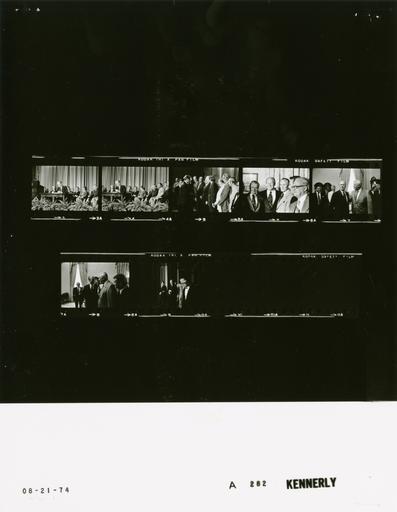Keywords: Ford A0282 NLGRF photo contact sheet (1974-08-21)(Gerald Ford Library).jpg White House Photographic Office WHPO is housed at the Gerald R Ford Presidential Library a branch of the National Archives and Records Administration NARA <br/><br/> This file is a 200 dpi photo contact sheet having images from roll of film A0282 of the August 9 1974 - January 20 1977 Gerald R Ford White House Photographic Office Series A0001-A9999 and B0001-B2886 photographs <br/><br/> The date on the photo contact sheet is the date the roll of film was processed not necessarily the date the photographs were taken See table below for additional details 1974-08-21 Gerald R Ford Presidential Library Image http //www fordlibrarymuseum gov/library/whphotos/A0282_NLGRF jpg A0282_NLGRF jpg from http //www fordlibrarymuseum gov/library/whphotos/19740821whpo pdf White House Photographs August 21 1974 of the http //www fordlibrarymuseum gov/Library/whphotos/whpo asp White House Photographic Collection page White House Photographic Office WHPO <br/> Creator David Hume Kennerly PD-USGov Institution Institution Gerald R Ford Presidential Library Table wikitable sortable + Photo contact sheet A0282 U S President Ford Administration Gerald R Ford Library Frame s Tone Subject proper Subject generic Names Geographic Location Photographer Date - 3-4 BW H R 69 -Elementary and Secondary Education Acts signing all not in every frame GRF Frank Carlucci Steven Kurzman Virginia Trotter Terrell Bell Charles Cooke John Ottina; Sens Eastland Williams Javits Pell Dominick; Reps Perkins Quie Brademas Bell Washington DC Department of Health Education and Welfare HEW North Building -Auditorium Kennerly 1974-08-21 - 5 BW H R 69 -Elementary and Secondary Education Acts; former President Council of Great City Schools Golightly handshaking all not in every frame Golightly is African-American in spotted tie and in stripe suit GRF Frank Carlucci Steven Kurzman Virginia Trotter Terrell Bell Charles Cooke John Ottina; Sens Eastland Williams Javits Pell Dominick; Reps Perkins Quie Brademas Bell Cornelius L Golightly Washington DC Department of Health Education and Welfare HEW North Building -Auditorium Kennerly 1974-08-21 - 6 BW Courtesy Call on United States Senate posing GRF Sens Byrd Mansfield Brock other Senator Washington DC United States Capitol -Room S-208 Kennerly 1974-08-21 - 7-9 BW Courtesy Call on House of Representatives standing talking all not in every frame GRF Rep Tip O'Neill Timmons Friedersdorf Others Washington DC United States Capitol -Room H-210 Speaker's Office Kennerly 1974-08-21 Gerald R Ford Presidential Library and Museum-cooperation PD-USGov Contact sheets by the Ford White House August 1974 Photographs by David Hume Kennerly from 1974 |