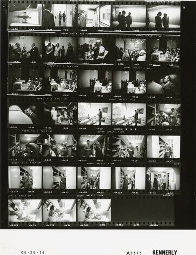 | Keywords: Ford A0373 NLGRF photo contact sheet (1974-08-26)(Gerald Ford Library).jpg White House Photographic Office WHPO is housed at the Gerald R Ford Presidential Library a branch of the National Archives and Records Administration NARA <br/><br/> This file is a 200 dpi photo contact sheet having images from roll of film A0373 of the August 9 1974 - January 20 1977 Gerald R Ford White House Photographic Office Series A0001-A9999 and B0001-B2886 photographs <br/><br/> The date on the photo contact sheet is the date the roll of film was processed not necessarily the date the photographs were taken See table below for additional details 1974-08-26 Gerald R Ford Presidential Library Image http //www fordlibrarymuseum gov/library/whphotos/A0373_NLGRF jpg A0373_NLGRF jpg from http //www fordlibrarymuseum gov/library/whphotos/19740826whpo pdf White House Photographs August 26 1974 of the http //www fordlibrarymuseum gov/Library/whphotos/whpo asp White House Photographic Collection page White House Photographic Office WHPO <br/> Creator David Hume Kennerly PD-USGov Institution Institution Gerald R Ford Presidential Library Table wikitable sortable + Photo contact sheet A0373 U S President Ford Administration Gerald R Ford Library Frame s Tone Subject proper Subject generic Names Geographic Location Photographer Date - 2A-3A BW standing in doorway GRF O'Donnell Oval Office Kennerly 1974-08-26 - 4A BW Reception for Herb Stein entering building GRF Secret Service Washington DC John F Kennedy Center for the Performing Arts Kennerly 1974-08-26 - 5A-6A BW Reception for Herb Stein walking through corridor GRF Secret Service Herb Stein Washington DC John F Kennedy Center for the Performing Arts Kennerly 1974-08-26 - 7A-10A BW Reception for Herb Stein greeting handshaking mingling GRF Others Washington DC John F Kennedy Center for the Performing Arts Kennerly 1974-08-26 - 11A-15A BW Reception for Herb Stein talking from behind podium GRF Others Washington DC John F Kennedy Center for the Performing Arts Kennerly 1974-08-26 - 16A-17A BW Reception for Herb Stein riding on elevator GRF Others Washington DC John F Kennedy Center for the Performing Arts Kennerly 1974-08-26 - 18A BW Return trip to White House greeting in parking garage GRF tourists Washington DC John F Kennedy Center for the Performing Arts Kennerly 1974-08-26 - 19A-20A BW talking GRF standing GRF Betty Ford Second Floor - West Sitting Hall Kennerly 1974-08-27 - 21A-29A BW moving boxes GRF Military Aide Third Floor Storage Room Kennerly 1974-08-27 - 30A BW moving boxes GRF Steve Ford Third Floor Storage Room Kennerly 1974-08-27 - 31A BW Steve closing door GRF Military Aide Steve Ford Unidentified Man Third Floor Storage Room Kennerly 1974-08-27 - 32A-34A BW talking Steve looking at trunk and record albums GRF Steve Ford Solarium Kennerly 1974-08-27 Gerald R Ford Presidential Library and Museum-cooperation PD-USGov Contact sheets by the Ford White House August 1974 Photographs by David Hume Kennerly from 1974 |