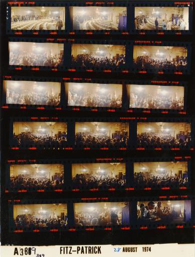 | Keywords: Ford A0389 NLGRF photo contact sheet (1974-08-28)(Gerald Ford Library).jpg White House Photographic Office WHPO is housed at the Gerald R Ford Presidential Library a branch of the National Archives and Records Administration NARA <br/><br/> This file is a 200 dpi photo contact sheet having images from roll of film A0389 of the August 9 1974 - January 20 1977 Gerald R Ford White House Photographic Office Series A0001-A9999 and B0001-B2886 photographs <br/><br/> The date on the photo contact sheet is the date the roll of film was processed not necessarily the date the photographs were taken See table below for additional details 1974-08-28 Gerald R Ford Presidential Library Image http //www fordlibrarymuseum gov/library/whphotos/A0389_NLGRF jpg A0389_NLGRF jpg from http //www fordlibrarymuseum gov/library/whphotos/19740828whpo pdf White House Photographs August 28 1974 of the http //www fordlibrarymuseum gov/Library/whphotos/whpo asp White House Photographic Collection page White House Photographic Office WHPO - Fitz-Patrick PD-USGov Institution Institution Gerald R Ford Presidential Library Table wikitable sortable + Photo contact sheet A0389 U S President Ford Administration Gerald R Ford Library Frame s Tone Subject proper Subject generic Names Geographic Location Photographer Date - 5 7 and 9 Color First Press Conference talking; chairs empty - long range Media East Room Fitz-Patrick 1974-08-28 - 10 12 14 and 15 Color First Press Conference GRF at podium media seated - long range GRF Media East Room Fitz-Patrick 1974-08-28 - 17 19 21 22 24 26 28 30 31 Color First Press Conference GRF at podium media seated - long range GRF Media East Room Fitz-Patrick 1974-08-28 - 33 Color First Press Conference GRF at podium media seated hands raised for questions -long range GRF Media East Room Fitz-Patrick 1974-08-28 - 34 Color First Press Conference GRF at podium media seated - medium range GRF Media East Room Fitz-Patrick 1974-08-28 Gerald R Ford Presidential Library and Museum-cooperation PD-USGov Contact sheets by the Ford White House August 1974 |
