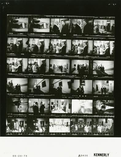 Keywords: Ford A0406 NLGRF photo contact sheet (1974-08-28)(Gerald Ford Library).jpg White House Photographic Office WHPO is housed at the Gerald R Ford Presidential Library a branch of the National Archives and Records Administration NARA <br/><br/> This file is a 200 dpi photo contact sheet having images from roll of film A0406 of the August 9 1974 - January 20 1977 Gerald R Ford White House Photographic Office Series A0001-A9999 and B0001-B2886 photographs <br/><br/> The date on the photo contact sheet is the date the roll of film was processed not necessarily the date the photographs were taken See table below for additional details 1974-08-28 Gerald R Ford Presidential Library Image http //www fordlibrarymuseum gov/library/whphotos/A0406_NLGRF jpg A0406_NLGRF jpg from http //www fordlibrarymuseum gov/library/whphotos/19740828whpo pdf White House Photographs August 28 1974 of the http //www fordlibrarymuseum gov/Library/whphotos/whpo asp White House Photographic Collection page White House Photographic Office WHPO <br/> Creator David Hume Kennerly PD-USGov Institution Institution Gerald R Ford Presidential Library Table wikitable sortable + Photo contact sheet A0406 U S President Ford Administration Gerald R Ford Library Frame s Tone Subject proper Subject generic Names Geographic Location Photographer Date - 3-6 BW Dinner for Cabinet and Senior White House Staff standing talking - vertical and horizontal GRF Burns Yellow Oval Room Kennerly 1974-08-28 - 7 BW Dinner for Cabinet and Senior White House Staff standing talking - long shot GRF Burns Others Yellow Oval Room Kennerly 1974-08-28 - 8-9 BW Dinner for Cabinet and Senior White House Staff standing talking GRF Burns Betty Ford Others Yellow Oval Room Kennerly 1974-08-28 - 10-13 BW Dinner for Cabinet and Senior White House Staff standing talking; Mrs Ford's arm on GRF shoulder GRF Betty Ford Mrs Rockefeller Yellow Oval Room Kennerly 1974-08-28 - 14 BW Dinner for Cabinet and Senior White House Staff standing laughing GRF Betty Ford Mrs Rockefeller Yellow Oval Room Kennerly 1974-08-28 - 15 BW Dinner for Cabinet and Senior White House Staff walking towards stairway; player seated GRF Betty Ford Nelson Mrs Rockefeller accordion player Second Floor - Center Hall Kennerly 1974-08-28 - 16 BW Dinner for Cabinet and Senior White House Staff entering Grand Staircase GRF Rockefeller Second Floor - Center Hall Kennerly 1974-08-28 - 17-18 BW Dinner for Cabinet and Senior White House Staff descending steps GRF Betty Ford Nelson Mrs Rockefeller Grand Stairway Kennerly 1974-08-28 - 19-21 BW Dinner for Cabinet and Senior White House Staff descending steps GRF Rockefeller Grand Stairway Kennerly 1974-08-28 - 22 BW Dinner for Cabinet and Senior White House Staff walking from steps GRF Rockefeller Cross Hall at Grand Stairway Kennerly 1974-08-28 - 23 BW Dinner for Cabinet and Senior White House Staff standing talking GRF Rockefeller Cross Hall Kennerly 1974-08-28 - 24 BW Dinner for Cabinet and Senior White House Staff standing talking GRF Rockefeller Cross Hall near Entrance Hall/Grand Hall Kennerly 1974-08-28 - 25 BW Dinner for Cabinet and Senior White House Staff GRF standing women sitting; waiter walking GRF Two Women Guests White House waiter Blue Room Kennerly 1974-08-28 - 26 BW Dinner for Cabinet and Senior White House Staff Blue Room Kennerly 1974-08-28 - 27 BW Dinner for Cabinet and Senior White House Staff GRF standing talking; waiters flanking GRF Two Women Guests Two White House waiters Blue Room Kennerly 1974-08-28 - 28-29 BW Dinner for Cabinet and Senior White House Staff all but GRF and Rockefeller seated GRF Rockefeller Guests Blue Room Kennerly 1974-08-28 - 30 BW Dinner for Cabinet and Senior White House Staff seated talking - all not in every frame GRF Betty Ford; Secs Kissinger Simon Schlesinger Morton Butz Dent Brennan Lynn Brinegar; Armstrong Burch Rush Marsh Hartmann Scali Burns Haig Timmons Buchen terHorst Lukash Bush Rockefeller Scranton Siedman spouses; Saxbe Blue Room Kennerly 1974-08-28 - 31-32 BW Dinner for Cabinet and Senior White House Staff seated talking - all not in every frame GRF Betty Ford; Secs Kissinger Simon Schlesinger Morton Butz Dent Brennan Lynn Brinegar; Armstrong Burch Rush Marsh Hartmann Scali Burns Haig Timmons Buchen terHorst Lukash Bush Rockefeller Scranton Siedman spouses; Saxbe Blue Room Kennerly 1974-08-28 Gerald R Ford Presidential Library and Museum-cooperation PD-USGov Contact sheets by the Ford White House August 1974 Photographs by David Hume Kennerly from 1974 |