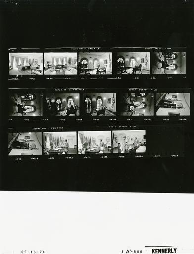 | Keywords: Ford A0800 NLGRF photo contact sheet (1974-09-16)(Gerald Ford Library).jpg White House Photographic Office WHPO is housed at the Gerald R Ford Presidential Library a branch of the National Archives and Records Administration NARA <br/><br/> This file is a 200 dpi photo contact sheet having images from roll of film A0800 of the August 9 1974 - January 20 1977 Gerald R Ford White House Photographic Office Series A0001-A9999 and B0001-B2886 photographs <br/><br/> The date on the photo contact sheet is the date the roll of film was processed not necessarily the date the photographs were taken See table below for additional details 1974-09-16 Gerald R Ford Presidential Library Image http //www fordlibrarymuseum gov/library/whphotos/A0800_NLGRF jpg A0800_NLGRF jpg from http //www fordlibrarymuseum gov/library/whphotos/19740916whpo pdf White House Photographs September 16 1974 of the http //www fordlibrarymuseum gov/Library/whphotos/whpo asp White House Photographic Collection page White House Photographic Office WHPO <br/> Creator David Hume Kennerly PD-USGov Institution Institution Gerald R Ford Presidential Library Table wikitable sortable + Photo contact sheet A0800 U S President Ford Administration Gerald R Ford Library Frame s Tone Subject proper Subject generic Names Geographic Location Photographer Date - 3-4 BW Counsellor to the President seated around desk; GRF holding up document in 2nd frame; long shots GRF Hartmann Oval Office Kennerly 1974-09-16 - 5 BW Prior to Proclamation Announcing a Program for the Return of Vietnam Era Draft Evaders GRF entering room GRF Media Cabinet Room Kennerly 1974-09-16 - 6-10 BW Proclamation Announcing a Program for the Return of Vietnam Era Draft Evaders GRF seated reading GRF Media Cabinet Room Kennerly 1974-09-16 - 11 BW Following Proclamation Announcing a Program for the Return of Vietnam Era Draft Evaders GRF rising from chair GRF Media Cabinet Room Kennerly 1974-09-16 - 12-13 BW Following Proclamation Announcing a Program for the Return of Vietnam Era Draft Evaders leaving room GRF Cabinet Room Kennerly 1974-09-16 - 14-16 BW Assistant Press Secretary standing talking near desk GRF Hushen Oval Office Kennerly 1974-09-16 Gerald R Ford Presidential Library and Museum-cooperation PD-USGov Contact sheets by the Ford White House September 1974 Photographs by David Hume Kennerly from 1974 |