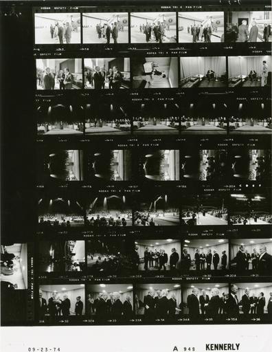 | Keywords: Ford A0949 NLGRF photo contact sheet (1974-09-23)(Gerald Ford Library).jpg White House Photographic Office WHPO is housed at the Gerald R Ford Presidential Library a branch of the National Archives and Records Administration NARA <br/><br/> This file is a 200 dpi photo contact sheet having images from roll of film A0949 of the August 9 1974 - January 20 1977 Gerald R Ford White House Photographic Office Series A0001-A9999 and B0001-B2886 photographs <br/><br/> The date on the photo contact sheet is the date the roll of film was processed not necessarily the date the photographs were taken See table below for additional details 1974-09-23 Gerald R Ford Presidential Library Image http //www fordlibrarymuseum gov/library/whphotos/A0949_NLGRF jpg A0949_NLGRF jpg from http //www fordlibrarymuseum gov/library/whphotos/19740923whpo pdf White House Photographs September 23 1974 of the http //www fordlibrarymuseum gov/Library/whphotos/whpo asp White House Photographic Collection page White House Photographic Office WHPO <br/> Creator David Hume Kennerly PD-USGov Institution Institution Gerald R Ford Presidential Library Table wikitable sortable + Photo contact sheet A0949 U S President Ford Administration Gerald R Ford Library Frame s Tone Subject proper Subject generic Names Geographic Location Photographer Date - 2-5 BW Arrival in Detroit for Ninth World Energy Conference - Romulus Michigan greeting handshaking posing GRF Gov Mrs William G Milliken Walker Cisler Romulus MI Metropolitan Airport - American Airlines Hangar Kennerly 1974-09-23 - 6 BW Arrival in Downtown Detroit for Ninth World Energy Conference - Detroit Michigan greeting handshaking GRF Steve Bechtel Detroit MI Outside Cobo Hall Kennerly 1974-09-23 - 7-8 BW Arrival in Downtown Detroit for Ninth World Energy Conference - Detroit Michigan standing talking GRF Steve Bechtel Gov William G Milliken Walker Cisler Detroit MI Outside Cobo Hall Kennerly 1974-09-23 - 9 BW Prior to address before the Ninth World Energy Conference - Detroit Michigan getting coffee GRF Todd Detroit MI Cobo Hall - Holding Room Kennerly 1974-09-23 - 10 BW Prior to address before the Ninth World Energy Conference - Detroit Michigan seated smoking pipe GRF Detroit MI Cobo Hall - Holding Room Kennerly 1974-09-23 - 11 BW Prior to address before the Ninth World Energy Conference - Detroit Michigan seated smoking pipe; Todd standing talking to GRF GRF Todd Detroit MI Cobo Hall - Holding Room Kennerly 1974-09-23 - 12-28 BW Address before the Ninth World Energy Conference - Detroit Michigan GRF speaking at podium long shots various angles GRF Platform Guests Others Detroit MI Cobo Arena Kennerly 1974-09-23 - 29-37 BW Ninth World Energy Conference - Detroit Michigan greeting handshaking standing talking various angles and distances; all not in every frame GRF Steve Bechtel Platform Guests Others Detroit MI Cobo Arena - VIP Reception Area Kennerly 1974-09-23 Gerald R Ford Presidential Library and Museum-cooperation PD-USGov Contact sheets by the Ford White House September 1974 Photographs by David Hume Kennerly from 1974 |