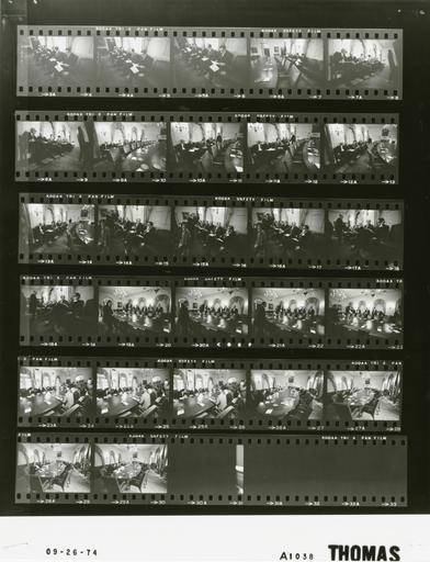 | Keywords: Ford A1038 NLGRF photo contact sheet (1974-09-26)(Gerald Ford Library).jpg White House Photographic Office WHPO is housed at the Gerald R Ford Presidential Library a branch of the National Archives and Records Administration NARA <br/><br/> This file is a 200 dpi photo contact sheet having images from roll of film A1038 of the August 9 1974 - January 20 1977 Gerald R Ford White House Photographic Office Series A0001-A9999 and B0001-B2886 photographs <br/><br/> The date on the photo contact sheet is the date the roll of film was processed not necessarily the date the photographs were taken See table below for additional details 1974-09-26 Gerald R Ford Presidential Library Image http //www fordlibrarymuseum gov/library/whphotos/A1038_NLGRF jpg A1038_NLGRF jpg from http //www fordlibrarymuseum gov/library/whphotos/19740926whpo pdf White House Photographs September 26 1974 of the http //www fordlibrarymuseum gov/Library/whphotos/whpo asp White House Photographic Collection page White House Photographic Office WHPO - Thomas PD-USGov Institution Institution Gerald R Ford Presidential Library Table wikitable sortable + Photo contact sheet A1038 U S President Ford Administration Gerald R Ford Library Frame s Tone Subject proper Subject generic Names Geographic Location Photographer Date - 3A-9A BW Senior Economic Advisers seated in chairs near window; holding and reading documents; various angles and distances Rush Paul McCracken Stephen Gardner Lynn Arthur Burns Ash Greenspan Cabinet Room Thomas 1974-09-26 - 10A-18A BW Senior Economic Advisers Seidman standing others seated in chairs near window talking; various angles and distances Rush Paul McCracken Stephen Gardner Lynn Arthur Burns Ash Greenspan Seidman Cabinet Room Thomas 1974-09-26 - 19A-22A BW Meeting with Senior Economic Advisers standing around table GRF Rush Paul McCracken Stephen Gardner Lynn Arthur Burns Ash Greenspan Seidman Cabinet Room Thomas 1974-09-26 - 23A-29A BW Meeting with Senior Economic Advisers seated at table talking; various angles and distances GRF Rush Paul McCracken Stephen Gardner Lynn Arthur Burns Ash Greenspan Seidman Cabinet Room Thomas 1974-09-26 Gerald R Ford Presidential Library and Museum-cooperation PD-USGov Contact sheets by the Ford White House September 1974 |
