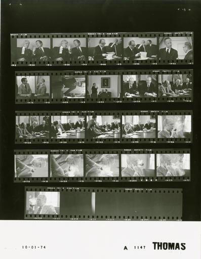| Keywords: Ford A1147 NLGRF photo contact sheet (1974-10-01)(Gerald Ford Library).jpg White House Photographic Office WHPO is housed at the Gerald R Ford Presidential Library a branch of the National Archives and Records Administration NARA <br/><br/> This file is a 200 dpi photo contact sheet having images from roll of film A1147 of the August 9 1974 - January 20 1977 Gerald R Ford White House Photographic Office Series A0001-A9999 and B0001-B2886 photographs <br/><br/> The date on the photo contact sheet is the date the roll of film was processed not necessarily the date the photographs were taken See table below for additional details 1974-10-01 Gerald R Ford Presidential Library Image http //www fordlibrarymuseum gov/library/whphotos/A1147_NLGRF jpg A1147_NLGRF jpg from http //www fordlibrarymuseum gov/library/whphotos/19741001whpo pdf White House Photographs October 1 1974 of the http //www fordlibrarymuseum gov/Library/whphotos/whpo asp White House Photographic Collection page White House Photographic Office WHPO - Thomas PD-USGov Institution Institution Gerald R Ford Presidential Library Table wikitable sortable + Photo contact sheet A1147 U S President Ford Administration Gerald R Ford Library Frame s Tone Subject proper Subject generic Names Geographic Location Photographer Date - 2A-3A BW Prior to Executive Committee of the Economic Policy Board EPB Meeting seated talking Burns Sec Lynn Cabinet Room Thomas 1974-10-01 - 4A-5A BW Prior to Executive Committee of the Economic Policy Board EPB Meeting Ash at table reading; Burns and Lynn in background Ash Sec Burns Lynn Cabinet Room Thomas 1974-10-01 - 6A BW Special Representative for Trade Negotiations; Consultant standing talking William Eberle Paul McCracken Cabinet Room Thomas 1974-10-01 - 7A BW Prior to Executive Committee of the Economic Policy Board EPB Meeting standing talking; leaning on chair backs Sec Simon Seidman Cabinet Room Thomas 1974-10-01 - 8A BW Prior to Executive Committee of the Economic Policy Board EPB Meeting standing leaning on chair back Greenspan Cabinet Room Thomas 1974-10-01 - 9A BW Black Star Photographer seated talking; Ward shooting photographs Burns Sec Lynn Fred Ward Cabinet Room Thomas 1974-10-01 - 10A BW Executive Committee of the Economic Policy Board EPB Meeting seated at table smiling Burns Ash Cabinet Room Thomas 1974-10-01 - 11A-12A BW Executive Committee of the Economic Policy Board EPB Meeting seated at table smiling GRF Burns Ash Cabinet Room Thomas 1974-10-01 - 13A BW Executive Committee of the Economic Policy Board EPB Meeting seated at table talking Greenspan GRF Burns Ash Cabinet Room Thomas 1974-10-01 - 14A BW Executive Committee of the Economic Policy Board EPB Meeting seated at table talking; Steward pouring coffee Greenspan GRF Burns Ash White House Steward Cabinet Room Thomas 1974-10-01 - 15A BW Executive Committee of the Economic Policy Board EPB Meeting seated at table listening; GRF smoking pipe GRF Burns Ash Cabinet Room Thomas 1974-10-01 - 16A-22A BW Executive Committee of the Economic Policy Board EPB Meeting head and shoulders portrait s smoking pipe; lots of smoke GRF Cabinet Room Thomas 1974-10-01 Gerald R Ford Presidential Library and Museum-cooperation PD-USGov Contact sheets by the Ford White House October 1974 |