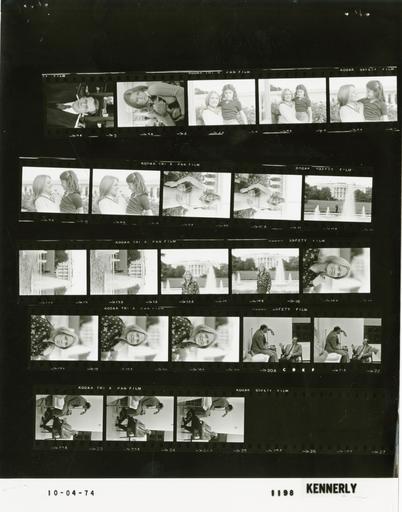 Keywords: Ford A1198 NLGRF photo contact sheet (1974-10-04)(Gerald Ford Library).jpg White House Photographic Office WHPO is housed at the Gerald R Ford Presidential Library a branch of the National Archives and Records Administration NARA <br/><br/> This file is a 200 dpi photo contact sheet having images from roll of film A1198 of the August 9 1974 - January 20 1977 Gerald R Ford White House Photographic Office Series A0001-A9999 and B0001-B2886 photographs <br/><br/> The date on the photo contact sheet is the date the roll of film was processed not necessarily the date the photographs were taken See table below for additional details 1974-10-04 Gerald R Ford Presidential Library Image http //www fordlibrarymuseum gov/library/whphotos/A1198_NLGRF jpg A1198_NLGRF jpg from http //www fordlibrarymuseum gov/library/whphotos/19741004whpo pdf White House Photographs October 4 1974 of the http //www fordlibrarymuseum gov/Library/whphotos/whpo asp White House Photographic Collection page White House Photographic Office WHPO <br/> Creator David Hume Kennerly PD-USGov Institution Institution Gerald R Ford Presidential Library Table wikitable sortable + Photo contact sheet A1198 U S President Ford Administration Gerald R Ford Library Frame s Tone Subject proper Subject generic Names Geographic Location Photographer Date - 2A BW seated at desk Rumsfeld White House Operations Office Kennerly 1974-10-04 - 3A BW Siamese Cat pet of Susan Ford posing holding Shan Susan Ford Shan the cat Third Floor - Promenade Kennerly 1974-10-04 - 4A-8A BW Neighbor Girl Susan Ford babysat for on Crown View Drive Alexandria VA seated; Ann on Susan's lap Susan Ford Ann Abbrussese Third Floor - Promenade Kennerly 1974-10-04 - 9A-10A BW Neighbor Girl Susan Ford babysat for on Crown View Drive Alexandria VA standing; Ann looking out from under Susan's Arm Susan Ford Ann Abbrussese Third Floor - Promenade Kennerly 1974-10-04 - 11A-13A BW standing -long shot - fountain in foreground White House in background Susan Ford South Lawn - Near Fountain Kennerly 1974-10-04 - 14A-15A BW standing -Fountain and White house in background Susan Ford South Lawn - Near Fountain Kennerly 1974-10-04 - 16A-19A BW head and shoulders portrait s - Fountain and White house in background Susan Ford South Lawn - Near Fountain Kennerly 1974-10-04 - 20A-24A BW Personal Physician to the President; Betty Ford's Surgeon - Bethesda Maryland seated talking; Lukash seated on gurney arm on IV hanger Dr Lukash Dr William Fouty Bethesda MD Bethesda Naval Hospital Kennerly 1974-10-04 Gerald R Ford Presidential Library and Museum-cooperation PD-USGov Contact sheets by the Ford White House October 1974 Photographs by David Hume Kennerly from 1974 |