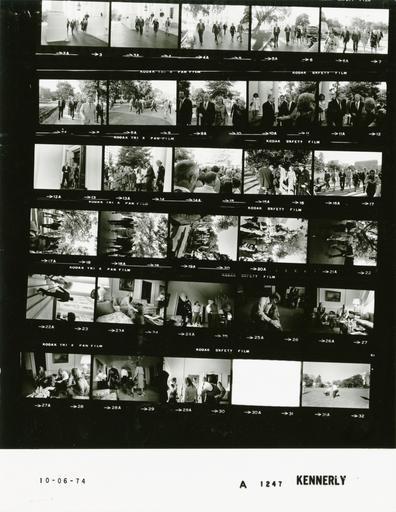 Keywords: Ford A1247 NLGRF photo contact sheet (1974-10-06)(Gerald Ford Library).jpg White House Photographic Office WHPO is housed at the Gerald R Ford Presidential Library a branch of the National Archives and Records Administration NARA <br/><br/> This file is a 200 dpi photo contact sheet having images from roll of film A1247 of the August 9 1974 - January 20 1977 Gerald R Ford White House Photographic Office Series A0001-A9999 and B0001-B2886 photographs <br/><br/> The date on the photo contact sheet is the date the roll of film was processed not necessarily the date the photographs were taken See table below for additional details 1974-10-06 Gerald R Ford Presidential Library Image http //www fordlibrarymuseum gov/library/whphotos/A1247_NLGRF jpg A1247_NLGRF jpg from http //www fordlibrarymuseum gov/library/whphotos/19741006whpo pdf White House Photographs October 6 1974 of the http //www fordlibrarymuseum gov/Library/whphotos/whpo asp White House Photographic Collection page White House Photographic Office WHPO <br/> Creator David Hume Kennerly PD-USGov Institution Institution Gerald R Ford Presidential Library Table wikitable sortable + Photo contact sheet A1247 U S President Ford Administration Gerald R Ford Library Frame s Tone Subject proper Subject generic Names Geographic Location Photographer Date - 2A-3A BW Going to Sunday Services at St John's Episcopal Church walking GRF Susan Ford Janet Ford Secret Service North Portico Kennerly 1974-10-06 - 4A-5A BW Going to Sunday Services at St John's Episcopal Church walking GRF Susan Ford Janet Ford Secret Service Media North Driveway Kennerly 1974-10-06 - 6A-9A BW Going to Sunday Services at St John's Episcopal Church walking; moving toward camera GRF Susan Ford Janet Ford Secret Service Media Washington DC Lafayette Park Kennerly 1974-10-06 - 10A-11A BW Prior to Sunday Services walking GRF Susan Ford Janet Ford Secret Service Media Washington DC Outside St John's Episcopal Church - Lafayette Square Kennerly 1974-10-06 - 12A BW Departure from Sunday Services at St John's Episcopal Church walking out door GRF Susan Ford Janet Ford Washington DC Outside St John's Episcopal Church - Lafayette Square Kennerly 1974-10-06 - 13A-15A BW Following Sunday Services at St John's Episcopal Church greeting handshaking GRF Susan Ford Janet Ford Parishioners Washington DC Outside St John's Episcopal Church - Lafayette Square Kennerly 1974-10-06 - 16A-20A BW Returning to White House from St John's Episcopal Church walking GRF Susan Ford Janet Ford Secret Service Media Washington DC Lafayette Park Kennerly 1974-10-06 - 21A BW Returning to White House from St John's Episcopal Church walking GRF Susan Ford Janet Ford Secret Service Media North Driveway Kennerly 1974-10-06 - 22A BW Returning to White House from St John's Episcopal Church walking up steps GRF Susan Ford Janet Ford North Portico Kennerly 1974-10-06 - 23A BW Pet Golden Retriever seated petting dog Susan Ford Liberty Second Floor - West Sitting Room Kennerly 1974-10-06 - 24A BW daughter-in-law of GRF; wife of Michael Ford standing; GRF kissing Gayle Ford GRF Janet Ford Michael Ford Gayle Ford Second Floor - West Sitting Room Kennerly 1974-10-06 - 25A BW Pet Golden Retriever Mike kneeling petting dog Michael Ford Liberty Second Floor - West Sitting Room Kennerly 1974-10-06 - 27A BW daughter-in-law of GRF; wife of Michael Ford - Pet Golden Retriever seated; GRF petting dog GRF Gayle Ford Susan Ford Liberty Second Floor - West Sitting Room Kennerly 1974-10-06 - 28A BW sister-in-law of GRF - Pet Golden Retriever walking toward Center Hall GRF Janet Ford Susan Ford Liberty Second Floor - West Sitting Room Kennerly 1974-10-06 - 29A BW sister-in-law of GRF standing talking GRF Janet Ford Susan Ford Michael Ford Others Second Floor - West Sitting Room Kennerly 1974-10-06 - 30A BW Kennerly 1974-10-06 - 31A BW Photo Opportunity with Pet Golden Retriever posing on lawn with dog - White House and OEOB in background GRF Susan Ford Liberty South Lawn Kennerly 1974-10-06 - 26A BW daughter-in-law of GRF; wife of Michael Ford - Pet Golden Retriever seated; GRF petting dog GRF Gayle Ford Liberty Second Floor - West Sitting Room Kennerly 1974-10-06 Gerald R Ford Presidential Library and Museum-cooperation PD-USGov Contact sheets by the Ford White House October 1974 Photographs by David Hume Kennerly from 1974 |