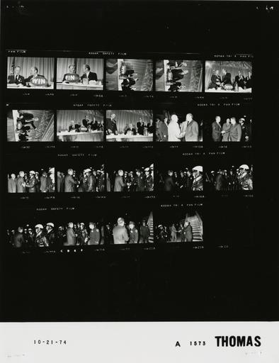 | Keywords: Ford A1573 NLGRF photo contact sheet (1974-10-22)(Gerald Ford Library).jpg White House Photographic Office WHPO is housed at the Gerald R Ford Presidential Library a branch of the National Archives and Records Administration NARA <br/><br/> This file is a 200 dpi photo contact sheet having images from roll of film A1573 of the August 9 1974 - January 20 1977 Gerald R Ford White House Photographic Office Series A0001-A9999 and B0001-B2886 photographs <br/><br/> The date on the photo contact sheet is the date the roll of film was processed not necessarily the date the photographs were taken See table below for additional details 1974-10-22 Gerald R Ford Presidential Library Image http //www fordlibrarymuseum gov/library/whphotos/A1573_NLGRF jpg A1573_NLGRF jpg from http //www fordlibrarymuseum gov/library/whphotos/19741022whpo pdf White House Photographs October 22 1974 of the http //www fordlibrarymuseum gov/Library/whphotos/whpo asp White House Photographic Collection page White House Photographic Office WHPO - Thomas PD-USGov Institution Institution Gerald R Ford Presidential Library Table wikitable sortable + Photo contact sheet A1573 U S President Ford Administration Gerald R Ford Library Frame s Tone Subject proper Subject generic Names Geographic Location Photographer Date - 5-6 BW Fundraising Dinner Hosted by Ohio and Cuyahoga/ Lake Republican Finance Committees; Chairman Hanna Mining Company - Cleveland Ohio seated at table talking - WIN football on table GRF Gilbert Bud Humphrey Cleveland OH Sheraton-Cleveland Hotel - Gold Room Thomas 1974-10-22 - 7-10 BW Fundraising Dinner Hosted by Ohio and Cuyahoga/ Lake Republican Finance Committees; United States Senator from Ohio OH ; Chairman Hanna Mining Company -Cleveland Ohio waving handshaking standing behind table - WIN football on table; all not in every frame GRF Sen Taft Gilbert Bud Humphrey Platform Guests Cleveland OH Sheraton-Cleveland Hotel - Gold Room Thomas 1974-10-22 - 11 BW Fundraising Dinner Hosted by Ohio and Cuyahoga/ Lake Republican Finance Committees; United States Senator from Ohio OH - Cleveland Ohio GRF seated hand on football; others standing applauding GRF Sen Taft Platform Guests Cleveland OH Sheraton-Cleveland Hotel - Gold Room Thomas 1974-10-22 - 12 BW Fundraising Dinner Hosted by Ohio and Cuyahoga/ Lake Republican Finance Committees; United States Senator from Ohio OH ; Chairman Hanna Mining Company -Cleveland Ohio GRF seated; others standing applauding GRF Sen Taft Gilbert Bud Humphrey Platform Guests Cleveland OH Sheraton-Cleveland Hotel - Gold Room Thomas 1974-10-22 - 13-14 BW Prior to Departure from Campaign Trip to Ohio - Cleveland Ohio handshaking saying goodbye -night shot GRF Others Cleveland OH Cleveland Hopkins International Airport Thomas 1974-10-22 - 15-21 BW Prior to Departure from Campaign Trip to Ohio - Cleveland Ohio handshaking thanking officers for help night shot GRF Police Officers Cleveland OH Cleveland Hopkins International Airport Thomas 1974-10-22 - 22-23 BW Prior to Departure from Campaign Trip to Ohio - Cleveland Ohio handshaking thanking officers for help - steps to Air Force One in background night shot GRF Police Officers Cleveland OH Cleveland Hopkins International Airport Thomas 1974-10-22 Gerald R Ford Presidential Library and Museum-cooperation PD-USGov Contact sheets by the Ford White House October 1974 |