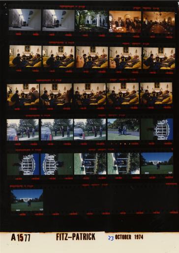 Keywords: Ford A1577 NLGRF photo contact sheet (1974-10-18)(Gerald Ford Library).jpg White House Photographic Office WHPO is housed at the Gerald R Ford Presidential Library a branch of the National Archives and Records Administration NARA <br/><br/> This file is a 200 dpi photo contact sheet having images from roll of film A1577 of the August 9 1974 - January 20 1977 Gerald R Ford White House Photographic Office Series A0001-A9999 and B0001-B2886 photographs <br/><br/> The date on the photo contact sheet is the date the roll of film was processed not necessarily the date the photographs were taken See table below for additional details 1974-10-18 Gerald R Ford Presidential Library Image http //www fordlibrarymuseum gov/library/whphotos/A1577_NLGRF jpg A1577_NLGRF jpg from http //www fordlibrarymuseum gov/library/whphotos/19741018whpo pdf White House Photographs October 18 1974 of the http //www fordlibrarymuseum gov/Library/whphotos/whpo asp White House Photographic Collection page White House Photographic Office WHPO - Fitz-Patrick PD-USGov Institution Institution Gerald R Ford Presidential Library Table wikitable sortable + Photo contact sheet A1577 U S President Ford Administration Gerald R Ford Library Frame s Tone Subject proper Subject generic Names Geographic Location Photographer Date - 21 Color Following Departure of President Minister of Foreign Affairs of Portugal standing posing Three Unidentified Men One Unidentified Woman South Driveway Fitz-Patrick 1974-10-18 - 3-4 Color President Minister of Foreign Affairs of Portugal; Ambassador to U S walking towards Cabinet Room Amb Catto; Francisco da Costa Gomes; Mario Alberto Nobre Lopez Joao Hall Themido Others Colonnade Fitz-Patrick 1974-10-18 - 5 Color President Minister of Foreign Affairs of Portugal; Ambassador to U S walking towards Cabinet Room - taken from Rose Garden Amb Catto; Francisco da Costa Gomes; Mario Alberto Nobre Lopez Joao Hall Themido Others Colonnade Fitz-Patrick 1974-10-18 - 6 Color President Minister of Foreign Affairs of Portugal; Ambassador to U S standing around table talking waiting to go to Oval Office - close up Amb Catto; Francisco da Costa Gomes; Mario Alberto Nobre Lopez Joao Hall Themido Others Cabinet Room Fitz-Patrick 1974-10-18 - 7 Color President Minister of Foreign Affairs of Portugal; Ambassador to U S standing around table talking waiting to go to Oval Office - long shot Amb Catto; Francisco da Costa Gomes; Mario Alberto Nobre Lopez Joao Hall Themido Others Cabinet Room Fitz-Patrick 1974-10-18 - 8-17 Color President Minister of Foreign Affairs of Portugal; Ambassador to U S seated near fireplace GRF Kissinger Scowcroft; Francisco da Costa Gomes; Mario Alberto Nobre Lopez Joao Hall Themido Others Oval Office Fitz-Patrick 1974-10-18 - 18-20 Color Departure of President Minister of Foreign Affairs of Portugal; Ambassador to U S GRF waving smiling; limousine on left side of photo GRF Kissinger Others South Driveway Fitz-Patrick 1974-10-18 - 22-23 Color White House Garden Tour standing posing -White House in background Unidentified Woman South Lawn Fitz-Patrick 1974-10-18 - 24 Color White House Garden Tour standing posing -White House in background Fitz-Patrick Two Unidentified Women South Lawn Fitz-Patrick 1974-10-18 - 25-26 Color White House Garden Tour standing posing -White House in background Two Unidentified Women Rose Garden Fitz-Patrick 1974-10-18 - 27-28 Color White House Garden Tour standing posing -White House in background Two Unidentified Women South Lawn Fitz-Patrick 1974-10-18 Gerald R Ford Presidential Library and Museum-cooperation PD-USGov Contact sheets by the Ford White House October 1974