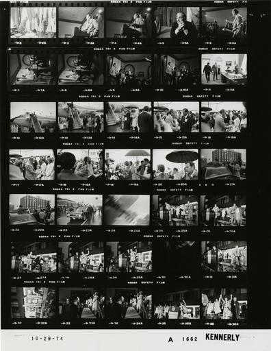| Keywords: Ford A1662 NLGRF photo contact sheet (1974-10-29)(Gerald Ford Library).jpg White House Photographic Office WHPO is housed at the Gerald R Ford Presidential Library a branch of the National Archives and Records Administration NARA <br/><br/> This file is a 200 dpi photo contact sheet having images from roll of film A1662 of the August 9 1974 - January 20 1977 Gerald R Ford White House Photographic Office Series A0001-A9999 and B0001-B2886 photographs <br/><br/> The date on the photo contact sheet is the date the roll of film was processed not necessarily the date the photographs were taken See table below for additional details 1974-10-29 Gerald R Ford Presidential Library Image http //www fordlibrarymuseum gov/library/whphotos/A1662_NLGRF jpg A1662_NLGRF jpg from http //www fordlibrarymuseum gov/library/whphotos/19741029whpo pdf White House Photographs October 29 1974 of the http //www fordlibrarymuseum gov/Library/whphotos/whpo asp White House Photographic Collection page White House Photographic Office WHPO <br/> Creator David Hume Kennerly PD-USGov Institution Institution Gerald R Ford Presidential Library Table wikitable sortable + Photo contact sheet A1662 U S President Ford Administration Gerald R Ford Library Frame s Tone Subject proper Subject generic Names Geographic Location Photographer Date - 2 BW walking away from desk GRF Hartmann Oval Office Kennerly 1974-10-29 - 3-4 BW Fourth Press Conference standing at podium; taken from below GRF White House -Press Briefing Area Kennerly 1974-10-29 - 5 BW Fourth Press Conference seated chewing fingers Nessen White House -Press Briefing Area Kennerly 1974-10-29 - 6-10 BW Fourth Press Conference GRF at podium Media asking questions - various angles and distances GRF Media White House -Press Briefing Area Kennerly 1974-10-29 - 11 BW standing around desk GRF Nessen Marsh Hartmann Oval Office Kennerly 1974-10-29 - 12-14 BW Trip to Grand Rapids Michigan GRF descending steps from Air Force One; others on tarmac GRF Gov Milliken Welcoming Committee Grand Rapids MI Kent County Airport Kennerly 1974-10-29 - 15-17 BW Trip to Grand Rapids; Brother and Sister-inlaw - Grand Rapids Michigan greeting embracing GRF Dick Ford Ellen Ford Others Grand Rapids MI Kent County Airport Kennerly 1974-10-29 - 18-20 BW Trip to Grand Rapids Michigan greeting handshaking open umbrellas prominent GRF Crowd Grand Rapids MI Kent County Airport Kennerly 1974-10-29 - 21-22 BW Trip to Grand Rapids Michigan greeting handshaking; GRF standing in open limousine - Kennedy Limousine GRF Crowd Grand Rapids MI Downtown Street Kennerly 1974-10-29 - 23 BW Trip to Grand Rapids Michigan GRF standing waving in open limousine - Kennedy Limousine GRF Secret Service Grand Rapids MI Downtown Street Kennerly 1974-10-29 - 24 BW Grand Rapids Michigan GRF Secret Service Grand Rapids MI Downtown Street Kennerly 1974-10-29 - 25-26 BW Welcome Home Rally Sponsored by Friends of the First Family ; Governor of Michigan - Grand Rapids Michigan Secchia at podium; GRF greeting hugging thanking Bennett for cookies; others applauding - night shots GRF Secchia Gov Milliken Althea Bennett Others Grand Rapids MI Calder Plaza Kennerly 1974-10-29 - 27-29 BW Welcome Home Rally Sponsored by Friends of the First Family ; Governor of Michigan Mayor of Grand Rapids - Grand Rapids Michigan Parks at podium; others standing -night shots GRF Secchia Gov Milliken Mayor Parks Others Grand Rapids MI Calder Plaza Kennerly 1974-10-29 - 30 BW Kennerly 1974-10-29 - 31 BW Welcome Home Rally Sponsored by Friends of the First Family -Grand Rapids Michigan Man at podium; GRF pushing table aside; others standing GRF Others Grand Rapids MI Calder Plaza Kennerly 1974-10-29 - 32-35 BW Welcome Home Rally Sponsored by Friends of the First Family -Grand Rapids Michigan GRF onstage - various angles and distances GRF Gov Milliken Others Grand Rapids MI Calder Plaza Kennerly 1974-10-29 - 36 BW Welcome Home Rally Sponsored by Friends of the First Family ; Governor of Michigan Mayor of Grand Rapids - Grand Rapids Michigan standing on stage; held hands raised GRF Gov Milliken Mayor Parks Grand Rapids MI Calder Plaza Kennerly 1974-10-29 Gerald R Ford Presidential Library and Museum-cooperation PD-USGov Contact sheets by the Ford White House October 1974 Photographs by David Hume Kennerly from 1974 |