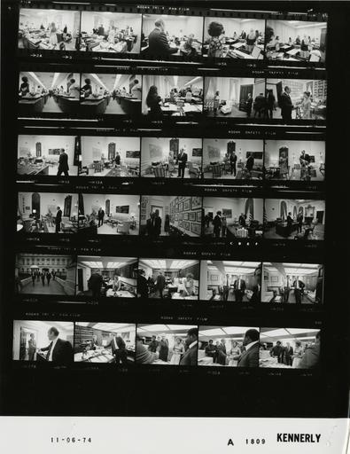 | Keywords: Ford A1809 NLGRF photo contact sheet (1974-11-06)(Gerald Ford Library).jpg  White House Photographic Office WHPO is housed at the Gerald R Ford Presidential Library a branch of the National Archives and Records Administration NARA <br/><br/> This file is a 200 dpi photo contact sheet having images from roll of film A1809 of the August 9 1974 - January 20 1977 Gerald R Ford White House Photographic Office Series A0001-A9999 and B0001-B2886 photographs <br/><br/> The date on the photo contact sheet is the date the roll of film was processed not necessarily the date the photographs were taken See table below for additional details 1974-11-06 Gerald R Ford Presidential Library Image http //www fordlibrarymuseum gov/library/whphotos/A1809_NLGRF jpg A1809_NLGRF jpg from http //www fordlibrarymuseum gov/library/whphotos/19741106whpo pdf White House Photographs November 6 1974 of the http //www fordlibrarymuseum gov/Library/whphotos/whpo asp White House Photographic Collection page White House Photographic Office WHPO <br/> Creator David Hume Kennerly PD-USGov Institution Institution Gerald R Ford Presidential Library Table wikitable sortable + Photo contact sheet A1809 U S President Ford Administration Gerald R Ford Library Frame s Tone Subject proper Subject generic Names Geographic Location Photographer Date - 2A-4A BW Presidential Tour of Old Executive Office Building greeting handshaking standing talking - all not in every frame see sheet GRF Clara Hyatt Ann Bradshaw Avis Queen Charlene Volpe Pauline Dufresne Gail Marsh Grace Jones Mildred Donaldson Gail Marsh Helen Williams Ellen Strichartz Rachel Saunders Janet Curtis Sharon Stewart Old Executive Office Building OEOB -Correspondence Kennerly 1974-11-06 - 5A-6A BW Presidential Tour of Old Executive Office Building greeting handshaking standing talking GRF Barbara Lyle Frances Wessel Charlene Baer Rachel Saunders Sharon Stewart Barbara Riegner Old Executive Office Building OEOB -Correspondence Kennerly 1974-11-06 - 7A-9A BW Presidential Tour of Old Executive Office Building greeting handshaking standing talking - all not in every frame see sheet GRF Mary Derszer Annita Holland Linda Clawson Amelia Houston Virginia Tyndall James Collier Elsie Brookshier Lorraine Royster Elisa Surrusco Clara Hyatt Maureen Hudson C Shackelford C Samaha Alice McPhillips Nick Merlino Robert Anderson Old Executive Office Building OEOB -Correspondence Kennerly 1974-11-06 - 10A BW Presidential Tour of Old Executive Office Building standing talking GRF Unidentified Woman Old Executive Office Building OEOB -Correspondence Kennerly 1974-11-06 - 11A BW Presidential Tour of Old Executive Office Building greeting handshaking GRF Marge Acker Old Executive Office Building OEOB -Correspondence Kennerly 1974-11-06 - 12A-18A BW Presidential Tour of Old Executive Office Building greeting handshaking standing talking GRF Rosemary Woods Old Executive Office Building OEOB -Correspondence Kennerly 1974-11-06 - 19A-21A BW Presidential Tour of Old Executive Office Building standing talking - looking at cartoon in first frame; all not in every frame GRF Rumsfeld O'Donnell Old Executive Office Building OEOB -Vice President's Office Kennerly 1974-11-06 - 22A BW Following Presidential Tour of Old Executive Office Building walking toward West Wing GRF Rumsfeld Secret Service Sidewalk Between Old Executive Office Building OEOB and White House Kennerly 1974-11-06 - 23A-24A BW Presidential Tour of West Wing greeting handshaking standing talking - all not in every frame see sheet GRF Judy Licata Diana Gwin Sara Currence Basement -Staff Secretary's Office Kennerly 1974-11-06 - 25A-26A BW Presidential Tour of West Wing - Deputy Assistant to the President greeting handshaking standing talking GRF Jerry Jones Basement -Staff Secretary's Office Kennerly 1974-11-06 - 27A BW Presidential Tour of West Wing - Deputy Staff Secretary greeting handshaking GRF Hoopes Basement -Staff Secretary's Office Kennerly 1974-11-06 - 28A BW Presidential Tour of West Wing - Secretarial Assistant greeting handshaking GRF Catherine Finley Basement -Office of the Chief Executive Clerk Kennerly 1974-11-06 - 29A-31A BW Presidential Tour of West Wing greeting handshaking standing talking - all not in every frame see sheet GRF Madeline Horton Cornelius Johnson Clarence Hawkins Norman Higginbotham Lawrence Hall Timothy Dundar Addison Wilborn George Parker Valeria Biribin Basement -Messenger Room Kennerly 1974-11-06 Gerald R Ford Presidential Library and Museum-cooperation PD-USGov Contact sheets by the Ford White House November 1974 Photographs by David Hume Kennerly from 1974 |