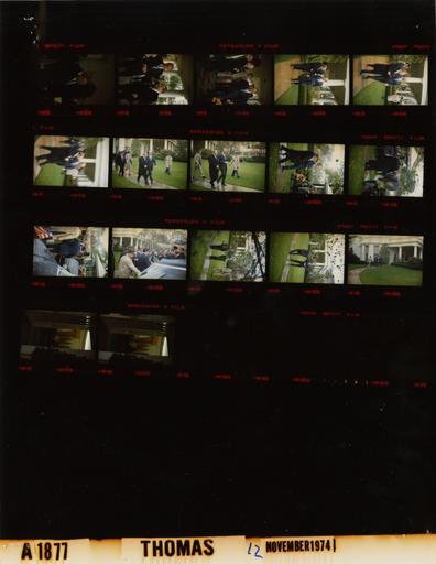 Keywords: Ford A1877 NLGRF photo contact sheet (1974-11-12)(Gerald Ford Library).jpg White House Photographic Office WHPO is housed at the Gerald R Ford Presidential Library a branch of the National Archives and Records Administration NARA <br/><br/> This file is a 200 dpi photo contact sheet having images from roll of film A1877 of the August 9 1974 - January 20 1977 Gerald R Ford White House Photographic Office Series A0001-A9999 and B0001-B2886 photographs <br/><br/> The date on the photo contact sheet is the date the roll of film was processed not necessarily the date the photographs were taken See table below for additional details 1974-11-12 Gerald R Ford Presidential Library Image http //www fordlibrarymuseum gov/library/whphotos/A1877_NLGRF jpg A1877_NLGRF jpg from http //www fordlibrarymuseum gov/library/whphotos/19741112whpo pdf White House Photographs November 12 1974 of the http //www fordlibrarymuseum gov/Library/whphotos/whpo asp White House Photographic Collection page White House Photographic Office WHPO - Thomas PD-USGov Institution Institution Gerald R Ford Presidential Library Table wikitable sortable + Photo contact sheet A1877 U S President Ford Administration Gerald R Ford Library Frame s Tone Subject proper Subject generic Names Geographic Location Photographer Date - 2A Color Chancellor of the Federal Republic of Austria standing GRF Bruno Kreisky Scowcroft Scheduling and Advance Office Thomas 1974-11-12 - 3A-4A Color Chancellor of the Federal Republic of Austria standing talking GRF Bruno Kreisky Others Colonnade Thomas 1974-11-12 - 5A-11A Color Prior to Departure of the Chancellor of the Federal Republic of Austria walking talking - raining; moving past camera; some out of focus GRF Bruno Kreisky Others Sidewalk Between Oval Office and South Driveway Thomas 1974-11-12 - 12A-13A Color Prior to Departure of the Chancellor of the Federal Republic of Austria saying goodbye near open door of limousine - raining GRF Bruno Kreisky Others South Driveway Thomas 1974-11-12 - 14A-15A Color Following the Departure of the Chancellor of the Federal Republic of Austria returning to Oval Office; looking back towards driveway - raining GRF Kissinger Sidewalk Between Oval Office and South Driveway Thomas 1974-11-12 - 16A Color Following the Departure of the Chancellor of the Federal Republic of Austria returning to Oval Office - raining; long shot; Oval Office and Colonnade visible GRF Kissinger Sidewalk Between Oval Office and South Driveway Thomas 1974-11-12 - 17A-18A Color seated around desk; Kissinger's back to camera - taken through Scheduling and Advance Office doorway GRF Kissinger Oval Office Thomas 1974-11-12 Gerald R Ford Presidential Library and Museum-cooperation PD-USGov Contact sheets by the Ford White House November 1974 |