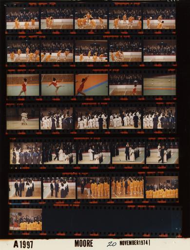 | Keywords: Ford A1997 NLGRF photo contact sheet (1974-11-20)(Gerald Ford Library).jpg White House Photographic Office WHPO is housed at the Gerald R Ford Presidential Library a branch of the National Archives and Records Administration NARA <br/><br/> This file is a 200 dpi photo contact sheet having images from roll of film A1997 of the August 9 1974 - January 20 1977 Gerald R Ford White House Photographic Office Series A0001-A9999 and B0001-B2886 photographs <br/><br/> The date on the photo contact sheet is the date the roll of film was processed not necessarily the date the photographs were taken See table below for additional details 1974-11-20 Gerald R Ford Presidential Library Image http //www fordlibrarymuseum gov/library/whphotos/A1997_NLGRF jpg A1997_NLGRF jpg from http //www fordlibrarymuseum gov/library/whphotos/19741120whpo pdf White House Photographs November 20 1974 of the http //www fordlibrarymuseum gov/Library/whphotos/whpo asp White House Photographic Collection page White House Photographic Office WHPO - Moore PD-USGov Institution Institution Gerald R Ford Presidential Library Table wikitable sortable + Photo contact sheet A1997 U S President Ford Administration Gerald R Ford Library Frame s Tone Subject proper Subject generic Names Geographic Location Photographer Date - 15A Color Trip to Japan - 1st Visit to Japan by Sitting U S President - Exhibition of Traditional and Modern Japanese Athletics - Local Time volleyballs on floor Tokyo Japan Budokan Sports Arena Moore 1974-11-20 - 1A-9A Color Trip to Japan - 1st Visit to Japan by Sitting U S President - Exhibition of Traditional and Modern Japanese Athletics - Local Time GRF and others seated in background watching volleyball match; athletes in foreground GRF Athletes Others Tokyo Japan Budokan Sports Arena Moore 1974-11-20 - 10A Color Trip to Japan - 1st Visit to Japan by Sitting U S President - Exhibition of Traditional and Modern Japanese Athletics - Local Time seated watching athletic demonstration GRF Others Tokyo Japan Budokan Sports Arena Moore 1974-11-20 - 11A-14A Color Trip to Japan - 1st Visit to Japan by Sitting U S President - Exhibition of Traditional and Modern Japanese Athletics - Local Time doing floor exercises Female Gymnast Tokyo Japan Budokan Sports Arena Moore 1974-11-20 - 16A Color Trip to Japan - 1st Visit to Japan by Sitting U S President - Exhibition of Traditional and Modern Japanese Athletics - Local Time Judo demonstration Athletes Tokyo Japan Budokan Sports Arena Moore 1974-11-20 - 17A-31A Color Trip to Japan - 1st Visit to Japan by Sitting U S President - Exhibition of Traditional and Modern Japanese Athletics - Local Time GRF walking on Arena floor waving handshaking GRF Athletes Crowd Tokyo Japan Budokan Sports Arena Moore 1974-11-20 Gerald R Ford Presidential Library and Museum-cooperation PD-USGov Contact sheets by the Ford White House November 1974 |