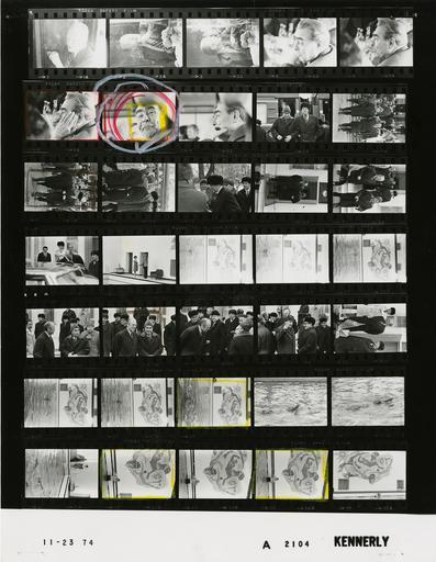 Keywords: Ford A2104 NLGRF photo contact sheet (1974-11-23)(Gerald Ford Library).jpg White House Photographic Office WHPO is housed at the Gerald R Ford Presidential Library a branch of the National Archives and Records Administration NARA <br/><br/> This file is a 200 dpi photo contact sheet having images from roll of film A2104 of the August 9 1974 - January 20 1977 Gerald R Ford White House Photographic Office Series A0001-A9999 and B0001-B2886 photographs <br/><br/> The date on the photo contact sheet is the date the roll of film was processed not necessarily the date the photographs were taken See table below for additional details 1974-11-23 Gerald R Ford Presidential Library Image http //www fordlibrarymuseum gov/library/whphotos/A2104_NLGRF jpg A2104_NLGRF jpg from http //www fordlibrarymuseum gov/library/whphotos/19741123whpo pdf White House Photographs November 23 1974 of the http //www fordlibrarymuseum gov/Library/whphotos/whpo asp White House Photographic Collection page White House Photographic Office WHPO <br/> Creator David Hume Kennerly PD-USGov Institution Institution Gerald R Ford Presidential Library Table wikitable sortable + Photo contact sheet A2104 U S President Ford Administration Gerald R Ford Library Frame s Tone Subject proper Subject generic Names Geographic Location Photographer Date - 1-3 BW Trip to the Union of Soviet Socialist Republics -Train Ride to Vladivostok - Local Time smoking pipe GRF U S S R Train Kennerly 1974-11-23 - 4-8 BW Trip to the Union of Soviet Socialist Republics -General Secretary - Train Ride to Vladivostok Local Time seated at table hand on chin; smoking cigarette Brezhnev U S S R Train Kennerly 1974-11-23 - 9-13 BW Trip to the Union of Soviet Socialist Republics -General Secretary - Local Time walking off train - GRF wearing Russian wool cap GRF Brezhnev Others Vladivostok U S S R Train Station Kennerly 1974-11-23 - 14-20 BW Trip to the Union of Soviet Socialist Republics -General Secretary - Local Time walking towards limousine GRF Brezhnev Others Vladivostok U S S R Okeansky Sanitarium -Outside Kennerly 1974-11-23 - 21 BW Trip to the Union of Soviet Socialist Republics -General Secretary - Local Time GRF bending looking into limousine saying goodbye GRF Others Vladivostok U S S R Okeansky Sanitarium -Outside Kennerly 1974-11-23 - 22 BW Trip to the Union of Soviet Socialist Republics Local Time handshaking; Lukash waving Lukash Unidentified Woman Vladivostok U S S R Swimming Pool - Okeansky Sanitarium Kennerly 1974-11-23 - 23-30 BW Trip to the Union of Soviet Socialist Republics Local Time swimming GRF Vladivostok U S S R Swimming Pool - Okeansky Sanitarium Kennerly 1974-11-23 - 31 BW Trip to the Union of Soviet Socialist Republics Local Time GRF swimming Others watching from poolside GRF Lukash Unidentified Woman Vladivostok U S S R Swimming Pool - Okeansky Sanitarium Kennerly 1974-11-23 - 32-35 BW Trip to the Union of Soviet Socialist Republics Local Time swimming GRF Vladivostok U S S R Swimming Pool - Okeansky Sanitarium Kennerly 1974-11-23 Gerald R Ford Presidential Library and Museum-cooperation PD-USGov Contact sheets by the Ford White House November 1974 Photographs by David Hume Kennerly from 1974 |