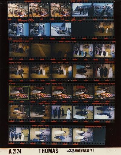 | Keywords: Ford A2124 NLGRF photo contact sheet (1974-11-22)(Gerald Ford Library).jpg White House Photographic Office WHPO is housed at the Gerald R Ford Presidential Library a branch of the National Archives and Records Administration NARA <br/><br/> This file is a 200 dpi photo contact sheet having images from roll of film A2124 of the August 9 1974 - January 20 1977 Gerald R Ford White House Photographic Office Series A0001-A9999 and B0001-B2886 photographs <br/><br/> The date on the photo contact sheet is the date the roll of film was processed not necessarily the date the photographs were taken See table below for additional details 1974-11-22 Gerald R Ford Presidential Library Image http //www fordlibrarymuseum gov/library/whphotos/A2124_NLGRF jpg A2124_NLGRF jpg from http //www fordlibrarymuseum gov/library/whphotos/19741122whpo pdf White House Photographs November 22 1974 of the http //www fordlibrarymuseum gov/Library/whphotos/whpo asp White House Photographic Collection page White House Photographic Office WHPO - Thomas PD-USGov Institution Institution Gerald R Ford Presidential Library Table wikitable sortable + Photo contact sheet A2124 U S President Ford Administration Gerald R Ford Library Frame s Tone Subject proper Subject generic Names Geographic Location Photographer Date - 4-6 Color Trip to the Republic of Korea - Visit with Troops of the U S 2nd Division; Commanding General 2nd Division - Local Time GRF standing near podium arms raised wearing 2nd Division letter sweater; Others standing applauding GRF Maj Gen Henry Emerson Troops Others Camp Casey South Korea Hanson Field House Thomas 1974-11-22 - 7 Color Trip to the Republic of Korea - Visit with Troops of the U S 2nd Division; Commanding General 2nd Division - Local Time walking towards parked jeeps GRF Maj Gen Henry Emerson Others Camp Casey South Korea Hanson Field House - Outside Thomas 1974-11-22 - 8-11 Color Trip to the Republic of Korea - Visit with Troops of the U S 2nd Division; Commanding General 2nd Division - Local Time GRF and driver seated in jeep; others standing nearby GRF Driver Troops Camp Casey South Korea Hanson Field House - Outside Thomas 1974-11-22 - 12 Color Thomas 1974-11-22 - 13-14 Color Trip to the Republic of Korea - Reception Line Prior to State Dinner Hosted by President -Daughter of President - Local Time greeting handshaking in receiving line - all not in every frame; formal wear GRF President Park Chung Hee Park Hun Hae Others Seoul South Korea Capitol Building -Reception Hall Thomas 1974-11-22 - 15-16 Color Seoul South Korea Thomas 1974-11-22 - 17-23 Color Trip to the Republic of Korea - Reception Line Prior to State Dinner Hosted by President -Daughter of President - Local Time greeting handshaking in receiving line - all not in every frame; formal wear GRF President Park Chung Hee Park Hun Hae Others Seoul South Korea Capitol Building -Reception Hall Thomas 1974-11-22 - 24-29 Color Trip to the Republic of Korea - Reception Line Prior to State Dinner Hosted by President -Daughter of President - Local Time greeting handshaking in receiving line - American Flag in foreground; all not in every frame; formal wear GRF President Park Chung Hee Park Hun Hae Others Seoul South Korea Capitol Building -Reception Hall Thomas 1974-11-22 - 30 Color Trip to the Republic of Korea - Reception Line Prior to State Dinner Hosted by President -Daughter of President - Local Time standing talking; formal wear GRF Park Hun Hae Seoul South Korea Capitol Building -Reception Hall Thomas 1974-11-22 - 31-34 Color Trip to the Republic of Korea - Following Reception Line Prior to State Dinner Hosted by President - Daughter of President - Local Time standing talking; formal wear GRF President Park Chung Hee Park Hun Hae Others Seoul South Korea Capitol Building -Reception Hall Thomas 1974-11-22 - 35-37 Color Trip to the Republic of Korea - Following Reception Line Prior to State Dinner Hosted by President - Daughter of President - Local Time standing talking - others not in every frame; formal wear Park Hun Hae Kissinger Others Seoul South Korea Capitol Building -Reception Hall Thomas 1974-11-22 Gerald R Ford Presidential Library and Museum-cooperation PD-USGov Contact sheets by the Ford White House November 1974 |