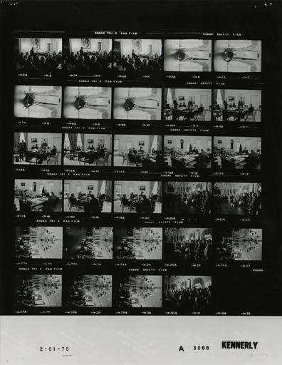 | Keywords: Ford A3066 NLGRF photo contact sheet (1975-01-31)(Gerald Ford Library).jpg White House Photographic Office WHPO is housed at the Gerald R Ford Presidential Library a branch of the National Archives and Records Administration NARA <br/><br/> This file is a 200 dpi photo contact sheet having images from roll of film A3066 of the August 9 1974 - January 20 1977 Gerald R Ford White House Photographic Office Series A0001-A9999 and B0001-B2886 photographs <br/><br/> The date on the photo contact sheet is the date the roll of film was processed not necessarily the date the photographs were taken See table below for additional details 1975-01-31 Gerald R Ford Presidential Library Image http //www fordlibrarymuseum gov/library/whphotos/A3066_NLGRF jpg A3066_NLGRF jpg from http //www fordlibrarymuseum gov/library/whphotos/19750131whpo pdf White House Photographs January 31 1975 of the http //www fordlibrarymuseum gov/Library/whphotos/whpo asp White House Photographic Collection page White House Photographic Office WHPO <br/> Creator David Hume Kennerly PD-USGov Institution Institution Gerald R Ford Presidential Library Table wikitable sortable + Photo contact sheet A3066 U S President Ford Administration Gerald R Ford Library Frame s Tone Subject proper Subject generic Names Geographic Location Photographer Date - 3-5 BW Dinner Meeting to Discuss Congressional Action on H R 1767 Deferring Oil Tariffs Kissinger standing speaking GRF Kissinger Republican Congressmen State Dining Room Kennerly 1975-01-31 - 6-10 BW American Actress and Photographer seated at table Candice Bergen Cabinet Room Kennerly 1975-02-01 - 11-20 BW Unidentified Meeting seated at desk; various angles; all not in every frame GRF Rockefeller Kissinger Hushen Oval Office Kennerly 1975-02-03 - 21-31 BW 1976 Budget Signing Ceremony GRF seated writing signing; others standing behind; greeting handshaking in frames 30; all not in every frame GRF Ash Office of Management Budget OMB Staff Cabinet Room Kennerly 1975-02-03 Gerald R Ford Presidential Library and Museum-cooperation PD-USGov Contact sheets by the Ford White House January 1975 Photographs by David Hume Kennerly from 1975 |
