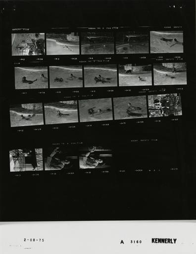 Keywords: Ford A3160 NLGRF photo contact sheet (1975-02-08)(Gerald Ford Library).jpg White House Photographic Office WHPO is housed at the Gerald R Ford Presidential Library a branch of the National Archives and Records Administration NARA <br/><br/> This file is a 200 dpi photo contact sheet having images from roll of film A3160 of the August 9 1974 - January 20 1977 Gerald R Ford White House Photographic Office Series A0001-A9999 and B0001-B2886 photographs <br/><br/> The date on the photo contact sheet is the date the roll of film was processed not necessarily the date the photographs were taken See table below for additional details 1975-02-08 Gerald R Ford Presidential Library Image http //www fordlibrarymuseum gov/library/whphotos/A3160_NLGRF jpg A3160_NLGRF jpg from http //www fordlibrarymuseum gov/library/whphotos/19750208whpo pdf White House Photographs February 8 1975 of the http //www fordlibrarymuseum gov/Library/whphotos/whpo asp White House Photographic Collection page White House Photographic Office WHPO <br/> Creator David Hume Kennerly PD-USGov Institution Institution Gerald R Ford Presidential Library Table wikitable sortable + Photo contact sheet A3160 U S President Ford Administration Gerald R Ford Library Frame s Tone Subject proper Subject generic Names Geographic Location Photographer Date - 2-15 BW Weekend Trip to Camp David -Pet Golden Retriever - Thurmont Maryland GRF and dog swimming GRF Liberty Thurmont MD Swimming Pool - Aspen Lodge - Camp David Kennerly 1975-02-08 - 16-17 BW Weekend Trip to Camp David -Thurmont Maryland GRF walking up steps toward Lodge; wearing robe GRF Thurmont MD Patio Near Swimming Pool - Aspen Lodge - Camp David Kennerly 1975-02-08 - 18-19 BW Weekend Trip to Camp David; First Lady neck brace arthritis - Thurmont Maryland speaking gesturing looking stern hands visible finger nails; wearing neck brace CBS news story of osteoarthritis flare up same day WHCA video F217 Betty Ford Thurmont MD Camp David -Aspen Lodge Kennerly 1975-02-08 Gerald R Ford Presidential Library and Museum-cooperation PD-USGov Contact sheets by the Ford White House February 1975 Photographs by David Hume Kennerly from 1975 Neck braces |