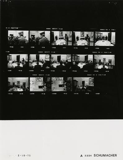 Keywords: Ford A3334 NLGRF photo contact sheet (1975-02-18)(Gerald Ford Library).jpg White House Photographic Office WHPO is housed at the Gerald R Ford Presidential Library a branch of the National Archives and Records Administration NARA <br/><br/> This file is a 200 dpi photo contact sheet having images from roll of film A3334 of the August 9 1974 - January 20 1977 Gerald R Ford White House Photographic Office Series A0001-A9999 and B0001-B2886 photographs <br/><br/> The date on the photo contact sheet is the date the roll of film was processed not necessarily the date the photographs were taken See table below for additional details 1975-02-18 Gerald R Ford Presidential Library Image http //www fordlibrarymuseum gov/library/whphotos/A3334_NLGRF jpg A3334_NLGRF jpg from http //www fordlibrarymuseum gov/library/whphotos/19750218whpo pdf White House Photographs February 18 1975 of the http //www fordlibrarymuseum gov/Library/whphotos/whpo asp White House Photographic Collection page White House Photographic Office WHPO - Schumacher PD-USGov Institution Institution Gerald R Ford Presidential Library Table wikitable sortable + Photo contact sheet A3334 U S President Ford Administration Gerald R Ford Library Frame s Tone Subject proper Subject generic Names Geographic Location Photographer Date - 5-18 BW Republican Congressional Breakfast Meeting standing talking in frames 59; seated around tables talking eating in bakance; various angles and distances; all not in every frame; GRF Rockefeller Congressional Republican Leaders First Floor - Family Dining Room Schumacher 1975-02-18 Gerald R Ford Presidential Library and Museum-cooperation PD-USGov Contact sheets by the Ford White House February 1975 |
