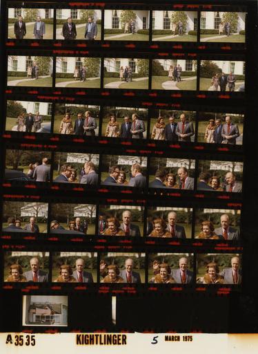 | Keywords: Ford A3535 NLGRF photo contact sheet (1975-03-05)(Gerald Ford Library).jpg White House Photographic Office WHPO is housed at the Gerald R Ford Presidential Library a branch of the National Archives and Records Administration NARA <br/><br/> This file is a 200 dpi photo contact sheet having images from roll of film A3535 of the August 9 1974 - January 20 1977 Gerald R Ford White House Photographic Office Series A0001-A9999 and B0001-B2886 photographs <br/><br/> The date on the photo contact sheet is the date the roll of film was processed not necessarily the date the photographs were taken See table below for additional details 1975-03-05 Gerald R Ford Presidential Library Image http //www fordlibrarymuseum gov/library/whphotos/A3535_NLGRF jpg A3535_NLGRF jpg from http //www fordlibrarymuseum gov/library/whphotos/19750305whpo pdf White House Photographs March 5 1975 of the http //www fordlibrarymuseum gov/Library/whphotos/whpo asp White House Photographic Collection page White House Photographic Office WHPO - Kightlinger PD-USGov Institution Institution Gerald R Ford Presidential Library Table wikitable sortable + Photo contact sheet A3535 U S President Ford Administration Gerald R Ford Library Frame s Tone Subject proper Subject generic Names Geographic Location Photographer Date - 3A-4A Color walking toward camera; Oval Office in background Nessen Hushen Sidewalk Between Oval Office and South Driveway Kightlinger 1975-03-05 - 5A-17A Color Prior to Kissinger's Departure for Middle East walking toward camera; Oval Office in background GRF Betty Ford Kissinger Sidewalk Between Oval Office and South Driveway Kightlinger 1975-03-05 - 18A-24A Color Prior to Kissinger's Departure for Middle East saying goodbye HAK kissing BF in first frame; limousine in foreground GRF Betty Ford Kissinger Sidewalk Between Oval Office and South Driveway Kightlinger 1975-03-05 - 25A-32A Color Henry Kissinger's Departure for Middle East waving GRF Betty Ford Sidewalk Between Oval Office and South Driveway Kightlinger 1975-03-05 - 33A Color kissing near Cabinet Room door backs to camera; Scowcroft standing to side GRF Betty Ford Colonnade Kightlinger 1975-03-05 Gerald R Ford Presidential Library and Museum-cooperation PD-USGov Contact sheets by the Ford White House March 1975 |