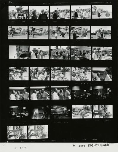 | Keywords: Ford A3893 NLGRF photo contact sheet (1975-04-01)(Gerald Ford Library).jpg White House Photographic Office WHPO is housed at the Gerald R Ford Presidential Library a branch of the National Archives and Records Administration NARA <br/><br/> This file is a 200 dpi photo contact sheet having images from roll of film A3893 of the August 9 1974 - January 20 1977 Gerald R Ford White House Photographic Office Series A0001-A9999 and B0001-B2886 photographs <br/><br/> The date on the photo contact sheet is the date the roll of film was processed not necessarily the date the photographs were taken See table below for additional details 1975-04-01 Gerald R Ford Presidential Library Image http //www fordlibrarymuseum gov/library/whphotos/A3893_NLGRF jpg A3893_NLGRF jpg from http //www fordlibrarymuseum gov/library/whphotos/19750401whpo pdf White House Photographs April 1 1975 of the http //www fordlibrarymuseum gov/Library/whphotos/whpo asp White House Photographic Collection page White House Photographic Office WHPO - Kightlinger PD-USGov Institution Institution Gerald R Ford Presidential Library Table wikitable sortable + Photo contact sheet A3893 U S President Ford Administration Gerald R Ford Library Frame s Tone Subject proper Subject generic Names Geographic Location Photographer Date - 3-21 BW Vacation Trip to California -Playing Round of Golf - Rancho Mirage California various activities; all not in every frame; golf attire GRF Parma Fred Wilson Frank Jameson Others Rancho Mirage CA Thunderbird Country Club Kightlinger 1975-04-01 - 22-25 BW Vacation Trip to California -Entertainer Harris - Rancho Mirage California standing talking GRF Phil Harris Unidentified Man Rancho Mirage CA Thunderbird Country Club Kightlinger 1975-04-01 - 26-30 BW Vacation Trip to California -Following Round of Golf - Rancho Mirage California seated talking GRF Others Rancho Mirage CA Thunderbird Country Club - Locker Room Kightlinger 1975-04-01 - 31-34 BW Vacation Trip to California -Palm Springs California kissing standing talking near fountain; Parma in last frame GRF Betty Ford; Parma Palm Springs CA Presidential Vacation Residence Kightlinger 1975-04-01 Gerald R Ford Presidential Library and Museum-cooperation PD-USGov Contact sheets by the Ford White House April 1975 |