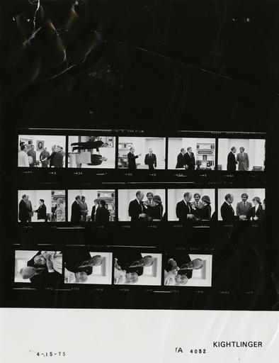Keywords: Ford A4052 NLGRF photo contact sheet (1975-04-05)(Gerald Ford Library).jpg White House Photographic Office WHPO is housed at the Gerald R Ford Presidential Library a branch of the National Archives and Records Administration NARA <br/><br/> This file is a 200 dpi photo contact sheet having images from roll of film A4052 of the August 9 1974 - January 20 1977 Gerald R Ford White House Photographic Office Series A0001-A9999 and B0001-B2886 photographs <br/><br/> The date on the photo contact sheet is the date the roll of film was processed not necessarily the date the photographs were taken See table below for additional details 1975-04-05 Gerald R Ford Presidential Library Image http //www fordlibrarymuseum gov/library/whphotos/A4052_NLGRF jpg A4052_NLGRF jpg from http //www fordlibrarymuseum gov/library/whphotos/19750405whpo pdf White House Photographs April 5 1975 of the http //www fordlibrarymuseum gov/Library/whphotos/whpo asp White House Photographic Collection page White House Photographic Office WHPO - Kightlinger PD-USGov Institution Institution Gerald R Ford Presidential Library Table wikitable sortable + Photo contact sheet A4052 U S President Ford Administration Gerald R Ford Library Frame s Tone Subject proper Subject generic Names Geographic Location Photographer Date - 3 BW Congressional Hour; US Representative from Missouri MO standing talking GRF Butz Rep Taylor Jack Warren Rod Patrick Jack Hollingsworth Cherry Warren Oval Office Kightlinger 1975-04-05 - 4-5 BW Meeting with the Secretary of Agriculture standing talking; GRF gesturing GRF Butz Oval Office Kightlinger 1975-04-05 - 6 BW Congressional Hour; US Representative from Washington WA walking toward fireplace GRF Rep Foley Oval Office Kightlinger 1975-04-05 - 7 BW Congressional Hour; US Representative from Connecticut CT greeting handshaking GRF Rep Sarasin Oval Office Kightlinger 1975-04-05 - 9-12 BW Congressional Hour; US Representative from Connecticut CT Richardson pinning Girl's Club emblem on GRF's lapel in third and fourth frames GRF Rep Sarasin Linda Richardson Lucille Wright Mae B Harty Oval Office Kightlinger 1975-04-05 - 13-16 BW Cystic Fibrosis Foundation Poster Child close-up; GRF holding girl GRF Allison Brannon Oval Office Kightlinger 1975-04-05 - 3 BW Congressional Hour; US Representative from Missouri MO standing talking GRF Butz Rep Taylor Jack Warren Rod Patrick Jack Hollingsworth Cherry Warren Oval Office Kightlinger 1975-04-15 - 4-5 BW Meeting with the Secretary of Agriculture standing talking; GRF gesturing GRF Butz Oval Office Kightlinger 1975-04-15 - 6 BW Congressional Hour; US Representative from Washington WA walking toward fireplace GRF Rep Foley Oval Office Kightlinger 1975-04-15 - 7 BW Congressional Hour; US Representative from Connecticut CT greeting handshaking GRF Rep Sarasin Oval Office Kightlinger 1975-04-15 - 9-12 BW Congressional Hour; US Representative from Connecticut CT Richardson pinning Girl's Club emblem on GRF's lapel in third and fourth frames GRF Rep Sarasin Linda Richardson Lucille Wright Mae B Harty Oval Office Kightlinger 1975-04-15 - 13-16 BW Cystic Fibrosis Foundation Poster Child close-up; GRF holding girl GRF Allison Brannon Oval Office Kightlinger 1975-04-15 Gerald R Ford Presidential Library and Museum-cooperation PD-USGov Contact sheets by the Ford White House April 1975 |