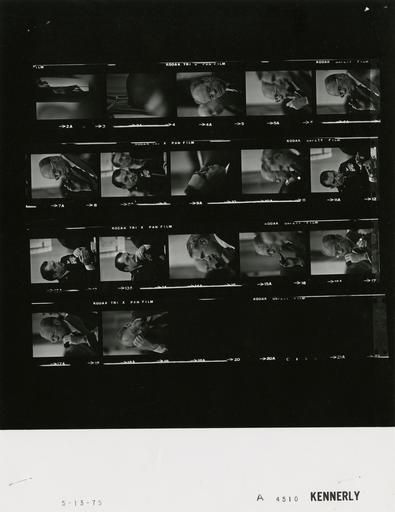 | Keywords: Ford A4510 NLGRF photo contact sheet (1975-05-13)(Gerald Ford Library).jpg White House Photographic Office WHPO is housed at the Gerald R Ford Presidential Library a branch of the National Archives and Records Administration NARA <br/><br/> This file is a 200 dpi photo contact sheet having images from roll of film A4510 of the August 9 1974 - January 20 1977 Gerald R Ford White House Photographic Office Series A0001-A9999 and B0001-B2886 photographs <br/><br/> The date on the photo contact sheet is the date the roll of film was processed not necessarily the date the photographs were taken See table below for additional details 1975-05-13 Gerald R Ford Presidential Library Image http //www fordlibrarymuseum gov/library/whphotos/A4510_NLGRF jpg A4510_NLGRF jpg from http //www fordlibrarymuseum gov/library/whphotos/19750513whpo pdf White House Photographs May 13 1975 of the http //www fordlibrarymuseum gov/Library/whphotos/whpo asp White House Photographic Collection page White House Photographic Office WHPO <br/> Creator David Hume Kennerly PD-USGov Institution Institution Gerald R Ford Presidential Library Table wikitable sortable + Photo contact sheet A4510 U S President Ford Administration Gerald R Ford Library Frame s Tone Subject proper Subject generic Names Geographic Location Photographer Date - 2A-3A BW Kennerly 1975-05-13 - 4A-7A BW National Security Council Meeting Regarding Seizure of the SS Mayaguez seated; head and shoulder portrait s ; smoking pipe in last three frames GRF Cabinet Room Kennerly 1975-05-13 - 8A BW National Security Council Meeting Regarding Seizure of the SS Mayaguez seated listening intently; Colby in background Jones Cabinet Room Kennerly 1975-05-13 - 9A BW National Security Council Meeting Regarding Seizure of the SS Mayaguez seated leaning back in chair listening Kissinger Cabinet Room Kennerly 1975-05-13 - 10A BW National Security Council Meeting Regarding Seizure of the SS Mayaguez seated listening; Schlesinger out of focus in foreground GRF Cabinet Room Kennerly 1975-05-13 - 11A-13A BW National Security Council Meeting Regarding Seizure of the SS Mayaguez speaking gesturing Jones Cabinet Room Kennerly 1975-05-13 - 14A BW National Security Council Meeting Regarding Seizure of the SS Mayaguez smoking pipe; GRF out of focus in background Schlesinger Cabinet Room Kennerly 1975-05-13 - 14A-18A BW National Security Council Meeting Regarding Seizure of the SS Mayaguez close up; listening smoking pipe; wearing glasses GRF Cabinet Room Kennerly 1975-05-13 Gerald R Ford Presidential Library and Museum-cooperation PD-USGov Contact sheets by the Ford White House May 1975 Photographs by David Hume Kennerly from 1975 |
