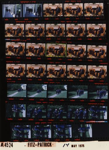 | Keywords: Ford A4524 NLGRF photo contact sheet (1975-05-14)(Gerald Ford Library).jpg White House Photographic Office WHPO is housed at the Gerald R Ford Presidential Library a branch of the National Archives and Records Administration NARA <br/><br/> This file is a 200 dpi photo contact sheet having images from roll of film A4524 of the August 9 1974 - January 20 1977 Gerald R Ford White House Photographic Office Series A0001-A9999 and B0001-B2886 photographs <br/><br/> The date on the photo contact sheet is the date the roll of film was processed not necessarily the date the photographs were taken See table below for additional details 1975-05-14 Gerald R Ford Presidential Library Image http //www fordlibrarymuseum gov/library/whphotos/A4524_NLGRF jpg A4524_NLGRF jpg from http //www fordlibrarymuseum gov/library/whphotos/19750514whpo pdf White House Photographs May 14 1975 of the http //www fordlibrarymuseum gov/Library/whphotos/whpo asp White House Photographic Collection page White House Photographic Office WHPO - Fitz-Patrick PD-USGov Institution Institution Gerald R Ford Presidential Library Table wikitable sortable + Photo contact sheet A4524 U S President Ford Administration Gerald R Ford Library Frame s Tone Subject proper Subject generic Names Geographic Location Photographer Date - 3A Color Departure of Prime Minister of the Netherlands standing watching limousine not shown leave GRF Kissinger Sidewalk Between Oval Office and South Driveway Fitz-Patrick 1975-05-14 - 4-5 Color Prime Minister of the Netherlands walking toward Oval Office Johannes den Uyl Others Colonnade Fitz-Patrick 1975-05-14 - 6-23 Color Meeting With Prime Minister of the Netherlands seated near fireplace; various angles GRF Johannes den Uyl Oval Office Fitz-Patrick 1975-05-14 - 24-29 Color Following Meeting With Prime Minister of the Netherlands; Foreign Minister Ambassador walking talking; moving toward camera; all may not be in frames GRF Johannes den Uyl Max van der Stoel Age R Tammenoms Bakker Charles Rutten Kissinger Scowcroft Sidewalk Between Oval Office and South Driveway Fitz-Patrick 1975-05-14 - 30-37 Color Prime Minister of the Netherlands handshaking; saying goodbye GRF Johannes den Uyl South Driveway Fitz-Patrick 1975-05-14 Gerald R Ford Presidential Library and Museum-cooperation PD-USGov Contact sheets by the Ford White House May 1975 |