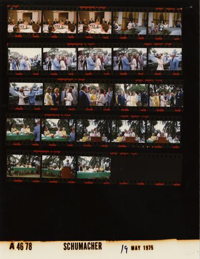 | Keywords: Ford A4678 NLGRF photo contact sheet (1975-05-19)(Gerald Ford Library).jpg White House Photographic Office WHPO is housed at the Gerald R Ford Presidential Library a branch of the National Archives and Records Administration NARA <br/><br/> This file is a 200 dpi photo contact sheet having images from roll of film A4678 of the August 9 1974 - January 20 1977 Gerald R Ford White House Photographic Office Series A0001-A9999 and B0001-B2886 photographs <br/><br/> The date on the photo contact sheet is the date the roll of film was processed not necessarily the date the photographs were taken See table below for additional details 1975-05-19 Gerald R Ford Presidential Library Image http //www fordlibrarymuseum gov/library/whphotos/A4678_NLGRF jpg A4678_NLGRF jpg from http //www fordlibrarymuseum gov/library/whphotos/19750519whpo pdf White House Photographs May 19 1975 of the http //www fordlibrarymuseum gov/Library/whphotos/whpo asp White House Photographic Collection page White House Photographic Office WHPO - Schumacher PD-USGov Institution Institution Gerald R Ford Presidential Library Table wikitable sortable + Photo contact sheet A4678 U S President Ford Administration Gerald R Ford Library Frame s Tone Subject proper Subject generic Names Geographic Location Photographer Date - 3-5 Color Trip to California -Private Dinner Hosted by Mr Mrs Robert Johns Clark - Los Angeles California seated around table; all not in frames Betty Ford Guests Los Angeles CA Presidential Suite - Beverly Hilton Hotel Schumacher 1975-05-19 - 6-7 Color Trip to California -Departure for Pepperdine University - Beverly Hills California BF waving; limousine in foreground Betty Ford Secret Service Others Beverly Hills CA Beverly Wilshire Hotel - Outside Schumacher 1975-05-20 - 8-19 Color Trip to California -Arrival for Foster Grandparent Program - Malibu California greeting handshaking walking to head table; all not in every frame Betty Ford Mrs Alison Gilbert James Wilber Dr Mrs Bill Banowsky Kenneth Hahn Mrs Kaye Bixby Others Malibu CA Pepperdine University Schumacher 1975-05-20 - 20-22 Color Trip to California -Foster Grandparent Program - Oldest Foster Grandparent - Malibu California BF standing with Williams at podium; all may not be in frames Betty Ford Mrs Alison Gilbert James Wilber Dr Mrs Bill Banowsky Kenneth Hahn Mrs Kaye Bixby Pearl Williams Others Malibu CA Pepperdine University Schumacher 1975-05-20 - 23-25 Color Trip to California -Foster Grandparent Program - Oldest Foster Grandparent - Malibu California BF and Williams seated listening to speaker; all may not be in frames Betty Ford Mrs Alison Gilbert James Wilber Dr Mrs Bill Banowsky Kenneth Hahn Mrs Kaye Bixby Pearl Williams Others Malibu CA Pepperdine University Schumacher 1975-05-20 Gerald R Ford Presidential Library and Museum-cooperation PD-USGov Contact sheets by the Ford White House May 1975 |