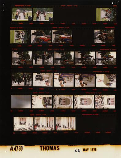 | Keywords: Ford A4730 NLGRF photo contact sheet (1975-05-26)(Gerald Ford Library).jpg White House Photographic Office WHPO is housed at the Gerald R Ford Presidential Library a branch of the National Archives and Records Administration NARA <br/><br/> This file is a 200 dpi photo contact sheet having images from roll of film A4730 of the August 9 1974 - January 20 1977 Gerald R Ford White House Photographic Office Series A0001-A9999 and B0001-B2886 photographs <br/><br/> The date on the photo contact sheet is the date the roll of film was processed not necessarily the date the photographs were taken See table below for additional details 1975-05-26 Gerald R Ford Presidential Library Image http //www fordlibrarymuseum gov/library/whphotos/A4730_NLGRF jpg A4730_NLGRF jpg from http //www fordlibrarymuseum gov/library/whphotos/19750526whpo pdf White House Photographs May 26 1975 of the http //www fordlibrarymuseum gov/Library/whphotos/whpo asp White House Photographic Collection page White House Photographic Office WHPO - Thomas PD-USGov Institution Institution Gerald R Ford Presidential Library Table wikitable sortable + Photo contact sheet A4730 U S President Ford Administration Gerald R Ford Library Frame s Tone Subject proper Subject generic Names Geographic Location Photographer Date - 4A-5A Color Prior to Memorial Day Wreath Laying at the Tomb of the Unknown Soldier - Arlington Virginia GRF and escort walking between Guard; Susan Ford and Kennerly in foreground backs to camera; long shots from top of steps GRF Honor Guard Others Arlington VA Arlington National Cemetery - Sidewalk at the Base of the Tomb of the Unknown Soldier Thomas 1975-05-26 - 6A-7A Color Thomas 1975-05-26 - 8A-9A Color Prior to Memorial Day Wreath Laying at the Tomb of the Unknown Soldier - Arlington Virginia GRF and escort walking between Guard; Susan Ford and Kennerly in foreground backs to camera; long shots from top of steps GRF Honor Guard Others Arlington VA Arlington National Cemetery -Steps at the Base of the Tomb of the Unknown Soldier Thomas 1975-05-26 - 10A-11A Color Memorial Day Wreath Laying at the Tomb of the Unknown Soldier - Arlington Virginia standing hand over heart; right profile GRF Arlington VA Arlington National Cemetery -Steps at the Base of the Tomb of the Unknown Soldier Thomas 1975-05-26 - 12A Color Thomas 1975-05-26 - 13A-19A Color Memorial Day Wreath Laying at the Tomb of the Unknown Soldier - Arlington Virginia placing wreath in first frame; standing hand over heart in most others; taken from right side GRF Honor Guard Others Arlington VA Arlington National Cemetery -Steps at the Base of the Tomb of the Unknown Soldier Thomas 1975-05-26 - 20A-31A BW Memorial Day Ceremony Near the Tomb of the Unknown Soldier - Arlington Virginia standing hand over hearts in first frame; taken from lower level GRF Veterans Guests Arlington VA Arlington National Cemetery -Amphitheater Thomas 1975-05-26 Gerald R Ford Presidential Library and Museum-cooperation PD-USGov Contact sheets by the Ford White House May 1975 |