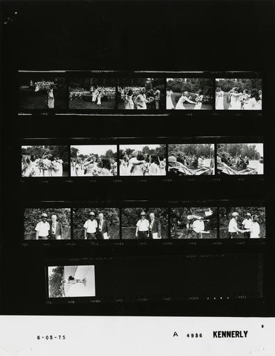 | Keywords: Ford A4936 NLGRF photo contact sheet (1975-06-05)(Gerald Ford Library).jpg White House Photographic Office WHPO is housed at the Gerald R Ford Presidential Library a branch of the National Archives and Records Administration NARA <br/><br/> This file is a 200 dpi photo contact sheet having images from roll of film A4936 of the August 9 1974 - January 20 1977 Gerald R Ford White House Photographic Office Series A0001-A9999 and B0001-B2886 photographs <br/><br/> The date on the photo contact sheet is the date the roll of film was processed not necessarily the date the photographs were taken See table below for additional details 1975-06-05 Gerald R Ford Presidential Library Image http //www fordlibrarymuseum gov/library/whphotos/A4936_NLGRF jpg A4936_NLGRF jpg from http //www fordlibrarymuseum gov/library/whphotos/19750605whpo pdf White House Photographs June 5 1975 of the http //www fordlibrarymuseum gov/Library/whphotos/whpo asp White House Photographic Collection page White House Photographic Office WHPO <br/> Creator David Hume Kennerly PD-USGov Institution Institution Gerald R Ford Presidential Library Table wikitable sortable + Photo contact sheet A4936 U S President Ford Administration Gerald R Ford Library Frame s Tone Subject proper Subject generic Names Geographic Location Photographer Date - 3-5 BW Holton Arms Commencement Exercise - Susan Ford's High School Graduation -Bethesda Maryland walking from stage; moving toward camera; carrying flowers Susan Ford Graduates Bethesda MD Holton Arms School - Amphitheater Kennerly 1975-06-05 - 6-10 BW Holton Arms Commencement Exercise - Susan Ford's High School Graduation -Bethesda Maryland embracing laughing celebrating; all not in every frame Susan Ford Golubin Twins Graduates Bethesda MD Holton Arms School - Amphitheater Kennerly 1975-06-05 - 11-12 BW Following Holton Arms Commencement Exercise - Susan Ford's High School Graduation -Bethesda Maryland standing near limousine; crowd surrounding vehicle; GRF waving in second frame GRF O'Donnell Crowd Others Bethesda MD Holton Arms School - Grounds Kennerly 1975-06-05 - 13-17 BW Following Holton Arms Commencement Exercise - Susan Ford's High School Graduation -Bethesda Maryland standing posing; all not in every frame; Betty Ford handshaking in last frame GRF Police Officers Bethesda MD Holton Arms School - Grounds Kennerly 1975-06-05 - 18 BW walking carrying jacket; sunglasses Unidentified Woman South Driveway Kennerly 1975-06-05 Gerald R Ford Presidential Library and Museum-cooperation PD-USGov Contact sheets by the Ford White House June 1975 Photographs by David Hume Kennerly from 1975 |