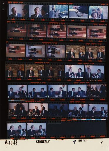 Keywords: Ford A4943 NLGRF photo contact sheet (1975-06-01)(Gerald Ford Library).jpg White House Photographic Office WHPO is housed at the Gerald R Ford Presidential Library a branch of the National Archives and Records Administration NARA <br/><br/> This file is a 200 dpi photo contact sheet having images from roll of film A4943 of the August 9 1974 - January 20 1977 Gerald R Ford White House Photographic Office Series A0001-A9999 and B0001-B2886 photographs <br/><br/> The date on the photo contact sheet is the date the roll of film was processed not necessarily the date the photographs were taken See table below for additional details 1975-06-01 Gerald R Ford Presidential Library Image http //www fordlibrarymuseum gov/library/whphotos/A4943_NLGRF jpg A4943_NLGRF jpg from http //www fordlibrarymuseum gov/library/whphotos/19750601whpo pdf White House Photographs June 1 1975 of the http //www fordlibrarymuseum gov/Library/whphotos/whpo asp White House Photographic Collection page White House Photographic Office WHPO <br/> Creator David Hume Kennerly PD-USGov Institution Institution Gerald R Ford Presidential Library Table wikitable sortable + Photo contact sheet A4943 U S President Ford Administration Gerald R Ford Library Frame s Tone Subject proper Subject generic Names Geographic Location Photographer Date - 1A-2A Color Trip to Austria - Meeting With Chancellor of Austria seated talking; HAK in foreground back to camera; close ups Kissinger Bruno Kreisky Salzburg Austria Sitting Room - Hotel Schloss Klessheim Kennerly 1975-06-01 - 3A-5A Color Trip to Austria - Departure of Chancellor of Austria standing near limousine waving walking toward door GRF Betty Ford Salzburg Austria Hotel Schloss Klessheim -Outside Kennerly 1975-06-01 - 6A-11A Color Trip to Austria standing talking; several taken through doorway from corridor GRF Kissinger Salzburg Austria Sitting Room - Hotel Schloss Klessheim Kennerly 1975-06-01 - 12A-13A Color Trip to Austria walking talking GRF Kissinger Salzburg Austria Hotel Schloss Klessheim Kennerly 1975-06-01 - 14A-18A Color Trip to Austria - Meeting with President of Egypt seated talking; close up GRF Anwar Al-Sadat Salzburg Austria Hotel Schloss Fuschl Kennerly 1975-06-01 - 19A-33A Color Trip to Austria - Luncheon Hosted by the President of Egypt seated talking at table; GRF and Mubarek in 3rd and 5th frames GRF Anwar Al-Sadat Salzburg Austria Hotel Schloss Fuschl - Luncheon Room Kennerly 1975-06-01 Gerald R Ford Presidential Library and Museum-cooperation PD-USGov Contact sheets by the Ford White House June 1975 Photographs by David Hume Kennerly from 1975 |