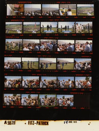| Keywords: Ford A5039 NLGRF photo contact sheet (1975-06-14)(Gerald Ford Library).jpg White House Photographic Office WHPO is housed at the Gerald R Ford Presidential Library a branch of the National Archives and Records Administration NARA <br/><br/> This file is a 200 dpi photo contact sheet having images from roll of film A5039 of the August 9 1974 - January 20 1977 Gerald R Ford White House Photographic Office Series A0001-A9999 and B0001-B2886 photographs <br/><br/> The date on the photo contact sheet is the date the roll of film was processed not necessarily the date the photographs were taken See table below for additional details 1975-06-14 Gerald R Ford Presidential Library Image http //www fordlibrarymuseum gov/library/whphotos/A5039_NLGRF jpg A5039_NLGRF jpg from http //www fordlibrarymuseum gov/library/whphotos/19750614whpo pdf White House Photographs June 14 1975 of the http //www fordlibrarymuseum gov/Library/whphotos/whpo asp White House Photographic Collection page White House Photographic Office WHPO - Fitz-Patrick PD-USGov Institution Institution Gerald R Ford Presidential Library Table wikitable sortable + Photo contact sheet A5039 U S President Ford Administration Gerald R Ford Library Frame s Tone Subject proper Subject generic Names Geographic Location Photographer Date - 4 Color Trip to Georgia - 200th Anniversary of the U S Army Infantry - Columbus Georgia standing talking GRF Maj Gen Tarpley Columbus GA Infantry Hall - Fort Benning Fitz-Patrick 1975-06-14 - 5-12 Color Trip to Georgia - 200th Anniversary of the U S Army Infantry - Columbus Georgia GRF standing on platform watching troops passing in review; various angles and distances; all not in every frame GRF Maj Gen Tarpley Guests Troops Columbus GA Fort Benning -Reviewing Stand Fitz-Patrick 1975-06-14 - 13-14 Color Trip to Georgia - 200th Anniversary of the U S Army Infantry - Columbus Georgia GRF walking down line greeting handshaking; all not in every frame GRF Army Rangers Military Personnel Columbus GA Fort Benning -York Field Fitz-Patrick 1975-06-14 - 15-32 Color Trip to Georgia - 200th Anniversary of the U S Army Infantry - Columbus Georgia various activities; greeting handshaking; various angles and distances; all not in every frame GRF Army Rangers Military Personnel Crowd Columbus GA Fort Benning -York Field Fitz-Patrick 1975-06-14 Gerald R Ford Presidential Library and Museum-cooperation PD-USGov Contact sheets by the Ford White House June 1975 |