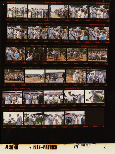 | Keywords: Ford A5040 NLGRF photo contact sheet (1975-06-14)(Gerald Ford Library).jpg White House Photographic Office WHPO is housed at the Gerald R Ford Presidential Library a branch of the National Archives and Records Administration NARA <br/><br/> This file is a 200 dpi photo contact sheet having images from roll of film A5040 of the August 9 1974 - January 20 1977 Gerald R Ford White House Photographic Office Series A0001-A9999 and B0001-B2886 photographs <br/><br/> The date on the photo contact sheet is the date the roll of film was processed not necessarily the date the photographs were taken See table below for additional details 1975-06-14 Gerald R Ford Presidential Library Image http //www fordlibrarymuseum gov/library/whphotos/A5040_NLGRF jpg A5040_NLGRF jpg from http //www fordlibrarymuseum gov/library/whphotos/19750614whpo pdf White House Photographs June 14 1975 of the http //www fordlibrarymuseum gov/Library/whphotos/whpo asp White House Photographic Collection page White House Photographic Office WHPO - Fitz-Patrick PD-USGov Institution Institution Gerald R Ford Presidential Library Table wikitable sortable + Photo contact sheet A5040 U S President Ford Administration Gerald R Ford Library Frame s Tone Subject proper Subject generic Names Geographic Location Photographer Date - 19-20 Color Trip to Georgia - 200th Anniversary of the U S Army Infantry - Columbus Georgia seated in grandstands watching demonstration not shown ; various angles and distances; all not in every frame GRF Callaway Military Officers Enlisted Men Guests Columbus GA Fort Benning -Victory Pond Fitz-Patrick 1975-06-14 - 21 Color Trip to Georgia - 200th Anniversary of the U S Army Infantry - Columbus Georgia standing in sand area; GRF talking; surrounded by soldiers GRF Army Rangers Columbus GA Fort Benning -Victory Pond Fitz-Patrick 1975-06-14 - 5-15 Color Trip to Georgia - 200th Anniversary of the U S Army Infantry - Columbus Georgia various activities; greeting handshaking; various angles and distances; all not in every frame GRF Army Rangers Military Personnel Crowd Columbus GA Fort Benning -York Field Fitz-Patrick 1975-06-14 - 16-18 Color Trip to Georgia - 200th Anniversary of the U S Army Infantry - Columbus Georgia stopping for box lunch; walking talking carrying lunches GRF Army Ranger Columbus GA Fort Benning Fitz-Patrick 1975-06-14 - 22 Color Trip to Georgia - 200th Anniversary of the U S Army Infantry - Columbus Georgia walking from reviewing area back to limousine GRF Others Columbus GA Fort Benning -Victory Pond Fitz-Patrick 1975-06-14 - 23-24 Color Trip to Georgia - 200th Anniversary of the U S Army Infantry - Columbus Georgia GRF greeting handshaking with Ranger then man in plaid jacket GRF Army Ranger unidentified man Columbus GA Fort Benning -Eubanks Field Parachute Training Center Fitz-Patrick 1975-06-14 - 25-33 Color Trip to Georgia - 200th Anniversary of the U S Army Infantry - Columbus Georgia talking to non-coms and officers; handshaking; all not in every frame; standing near limousine in last 2 frames GRF Non-Commissioned Officers Others Columbus GA Fort Benning -Eubanks Field Parachute Training Center Fitz-Patrick 1975-06-14 Gerald R Ford Presidential Library and Museum-cooperation PD-USGov Contact sheets by the Ford White House June 1975 |