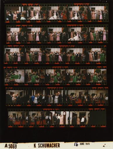 | Keywords: Ford A5069 NLGRF photo contact sheet (1975-06-16)(Gerald Ford Library).jpg  White House Photographic Office WHPO is housed at the Gerald R Ford Presidential Library a branch of the National Archives and Records Administration NARA <br/><br/> This file is a 200 dpi photo contact sheet having images from roll of film A5069 of the August 9 1974 - January 20 1977 Gerald R Ford White House Photographic Office Series A0001-A9999 and B0001-B2886 photographs <br/><br/> The date on the photo contact sheet is the date the roll of film was processed not necessarily the date the photographs were taken See table below for additional details 1975-06-16 Gerald R Ford Presidential Library Image http //www fordlibrarymuseum gov/library/whphotos/A5069_NLGRF jpg A5069_NLGRF jpg from http //www fordlibrarymuseum gov/library/whphotos/19750616whpo pdf White House Photographs June 16 1975 of the http //www fordlibrarymuseum gov/Library/whphotos/whpo asp White House Photographic Collection page White House Photographic Office WHPO - Schumacher PD-USGov Institution Institution Gerald R Ford Presidential Library Table wikitable sortable + Photo contact sheet A5069 U S President Ford Administration Gerald R Ford Library Frame s Tone Subject proper Subject generic Names Geographic Location Photographer Date - 1A Color Dancing Following State Dinner for the President Federal Republic of Germany dancing; formal wear Betty Ford Unidentified Man Entrance Hall/Grand Hall Schumacher 1975-06-16 - 2A-13A Color Dancing Following State Dinner for the President Federal Republic of Germany standing unidentified woman singing at microphone in most frames; all not in every frame; formal wear GRF Betty Ford Guests Marine Corps Band Entrance Hall/Grand Hall Schumacher 1975-06-16 - 14A-20A Color Dancing Following State Dinner for the President Federal Republic of Germany standing unidentified woman Nancy Ames singing at microphone in most frames; all not in every frame; formal wear GRF Betty Ford unidentified female guest Nancy Ames Guests Marine Corps Band Entrance Hall/Grand Hall Schumacher 1975-06-16 - 21A-27A Color Dancing Following State Dinner for the President Federal Republic of Germany GRF dancing with several women; formal wear GRF unidentified female guests; other guests Entrance Hall/Cross Hall Schumacher 1975-06-16 - 28A-29A Color Following State Dinner for the President Federal Republic of Germany standing posing near elevator and grandfather clock; formal wear; stepping into elevator in 2nd frame; formal wear GRF Betty Ford Military Aide Entrance Hall/Grand Hall Schumacher 1975-06-16 Gerald R Ford Presidential Library and Museum-cooperation PD-USGov Contact sheets by the Ford White House June 1975 |